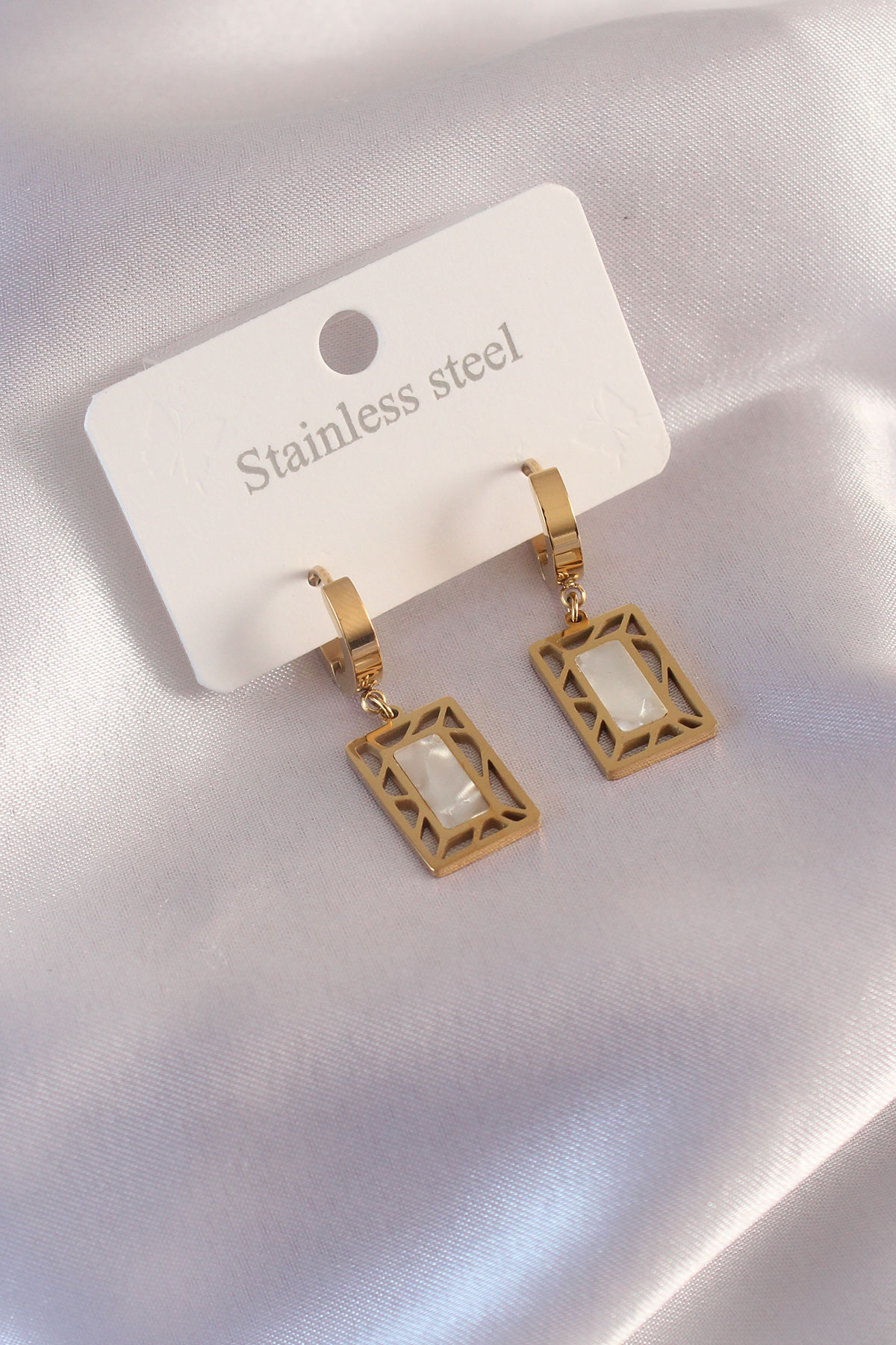Çelik Gold Renk Kare Kadın Küpe