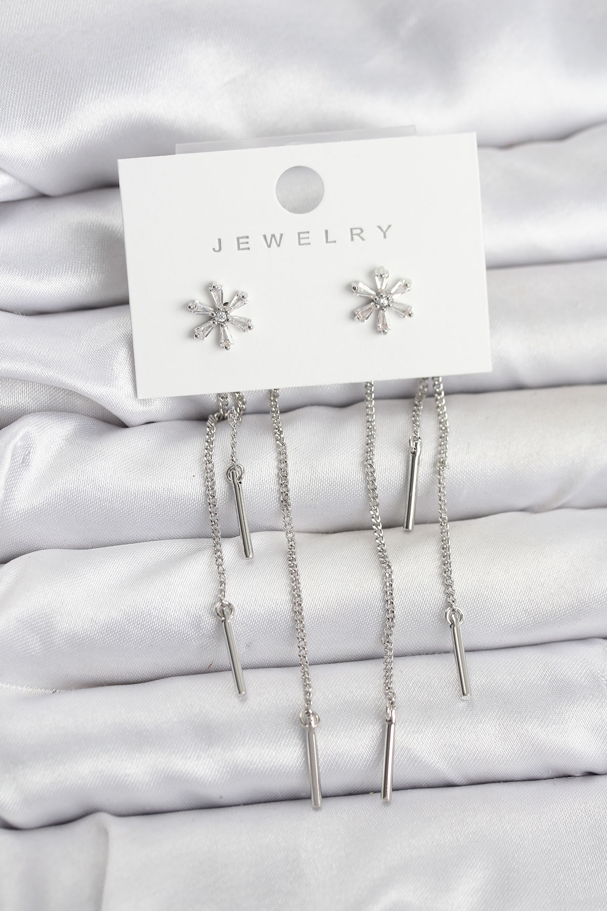Çiçek Model Gümüş Pirinç Sallantılı Kadın Küpe