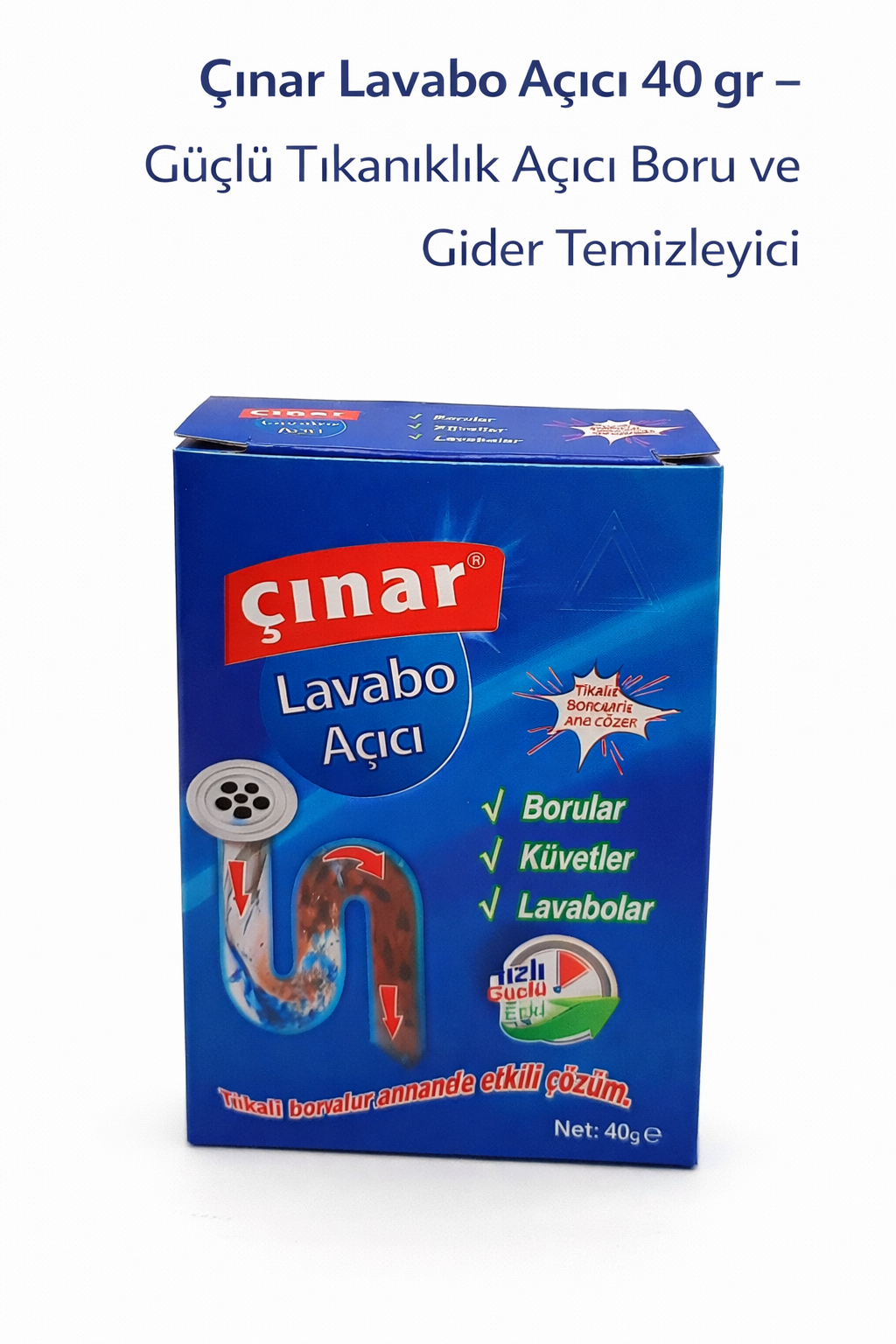 Çınar Lavabo Açıcı 40 gr – Güçlü Tıkanıklık Açıcı Boru ve Gider Temizleyici