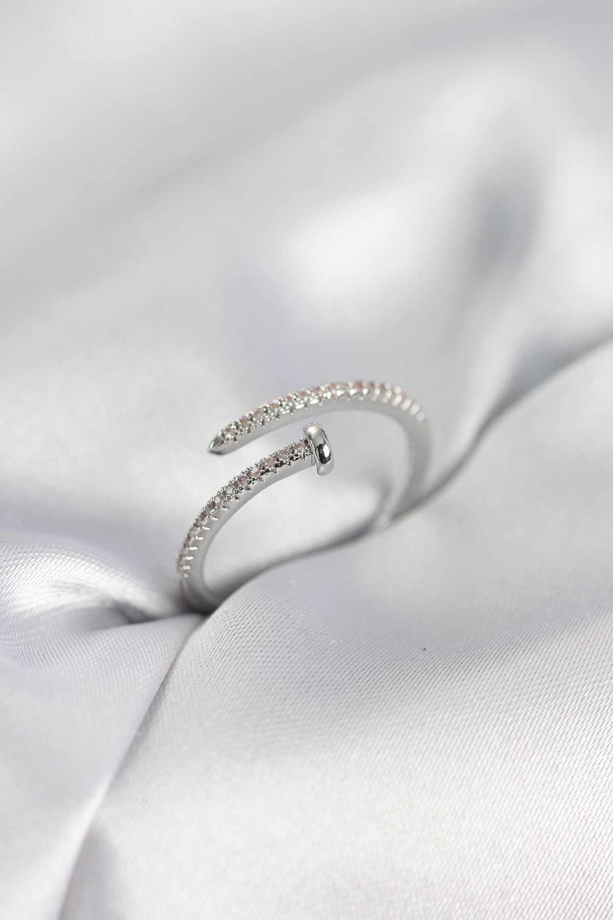 Çivi Model Zirkon Taşlı Gümüş Renk Kadın Yüzük