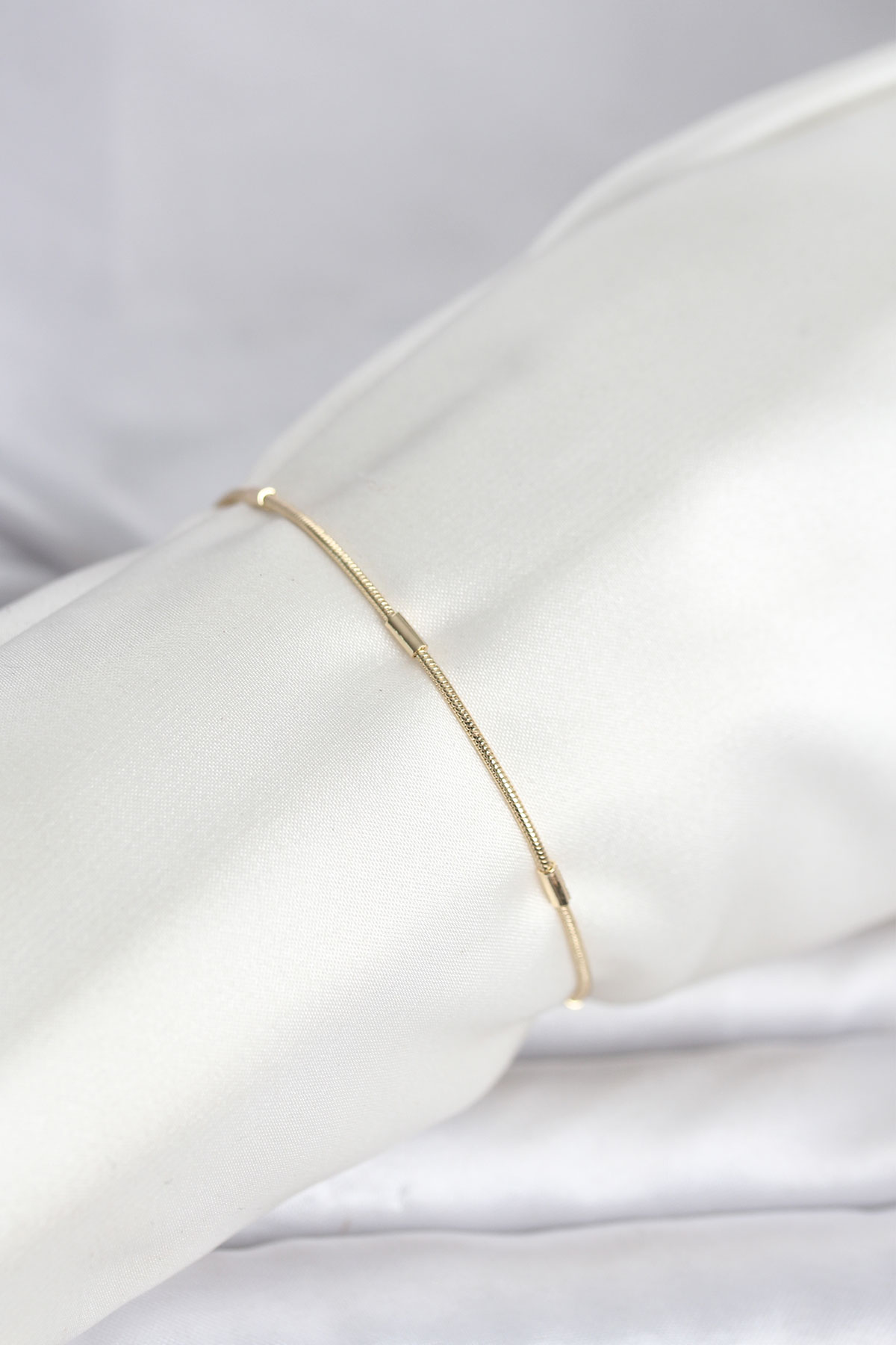 CM 14K Gold Renk Barlı Yılan Zincir Model Kadın Bileklik