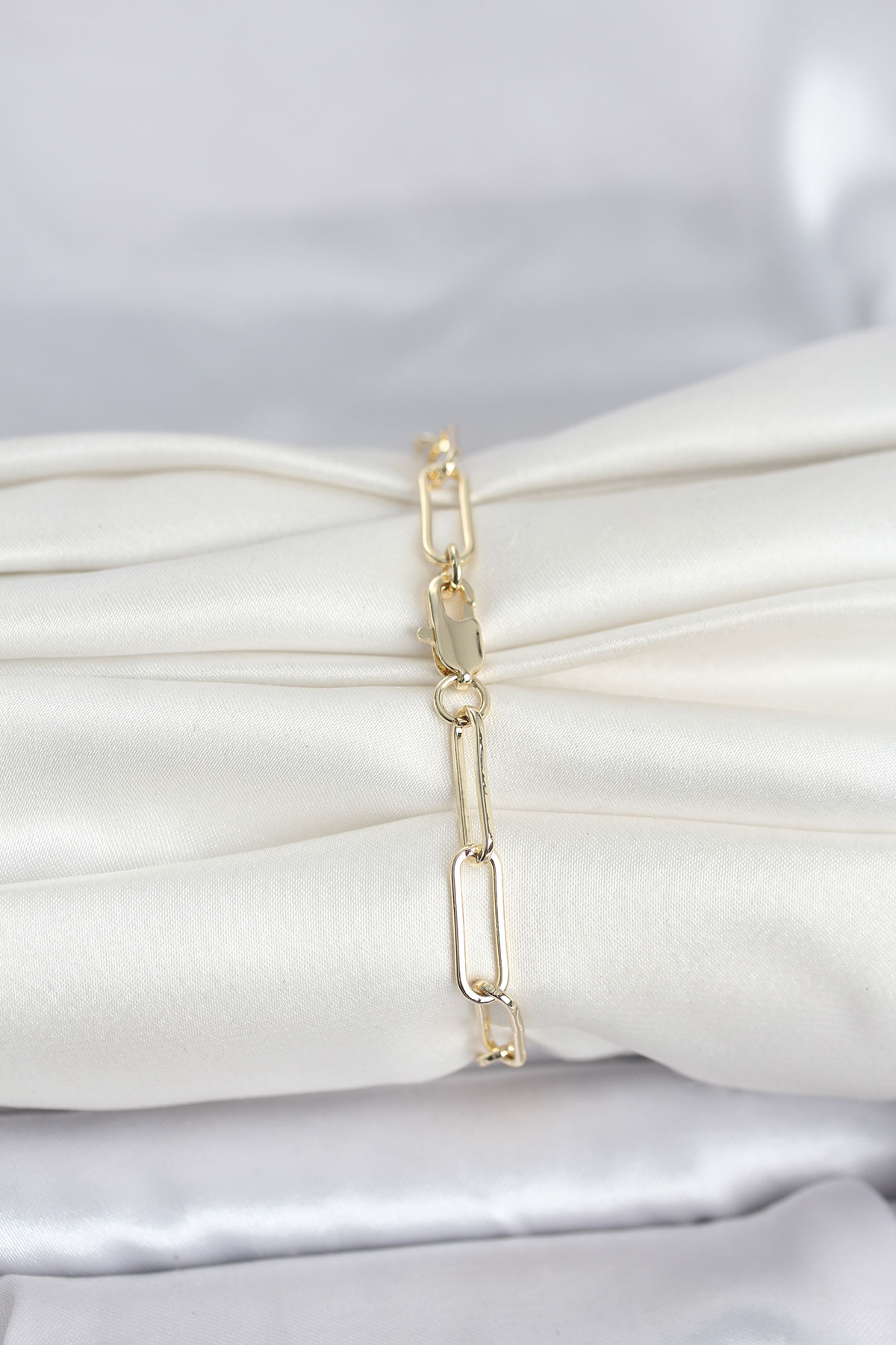 CM 14K Gold Renk Kalın Ataç Zincir Model Kadın Bileklik