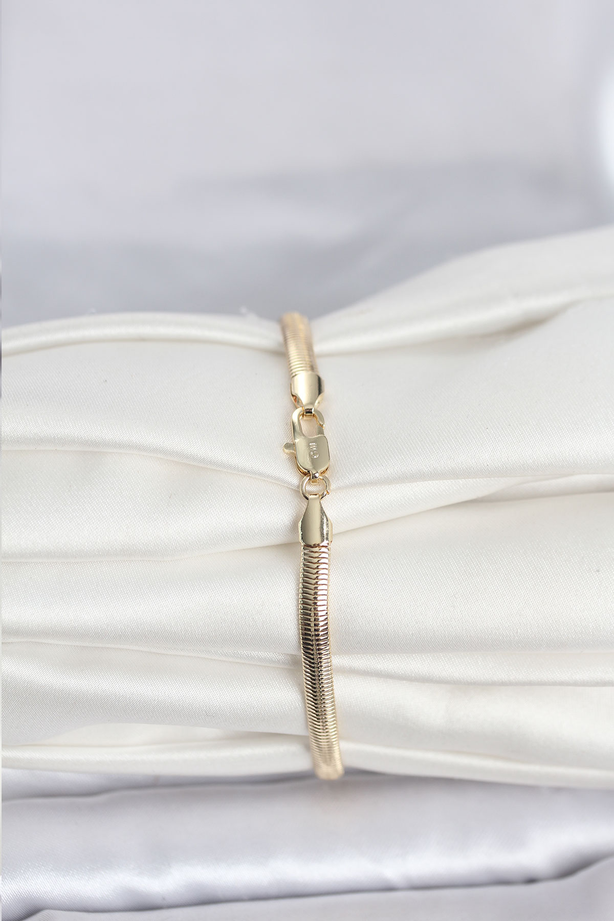 CM 14K Gold Renk Yassı Yılan Zincir Model Kadın Bileklik