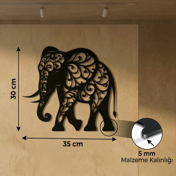 Modern ve dekoratif çizgileri sayesinde salon, oturma odası, antre, çalışma alanı, ofis ve stüdyo gibi farklı mekanlarda rahatlıkla kullanılabilir. Fil figürü, dekorasyonunuza estetik bir derinlik ve sıcak bir dokunuş katar.