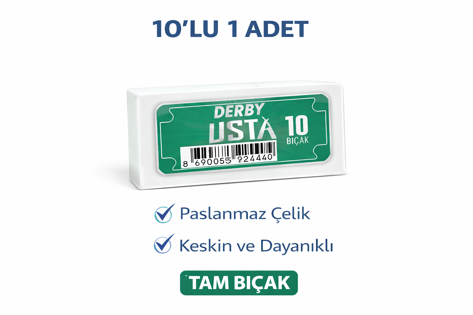 derby usta jilet, derby jilet 10lu, derby jilet 100lü, çift taraflı jilet, tam jilet, berber jileti, ustura jileti, geleneksel tıraş jileti, paslanmaz çelik jilet, profesyonel jilet, derby usta tam bıçak, ekonomik jilet paketi, berber malzemeleri, sakal tıraş jileti, derby razor blade