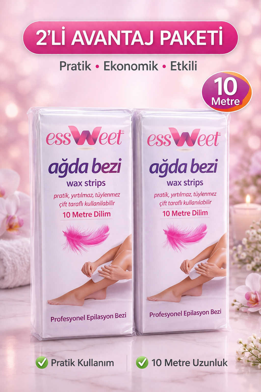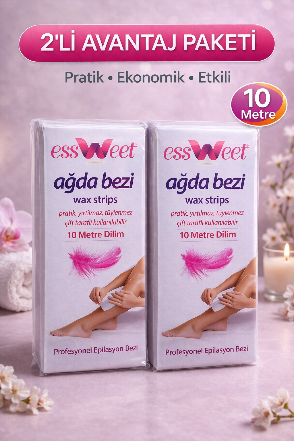 Essweet Ağda Bezi 10 Metre Dilim Profesyonel Epilasyon Bezi Çift Taraflı Kullanım Yırtılmaz Dayanıklı Ağda Bandı 2’li Paket