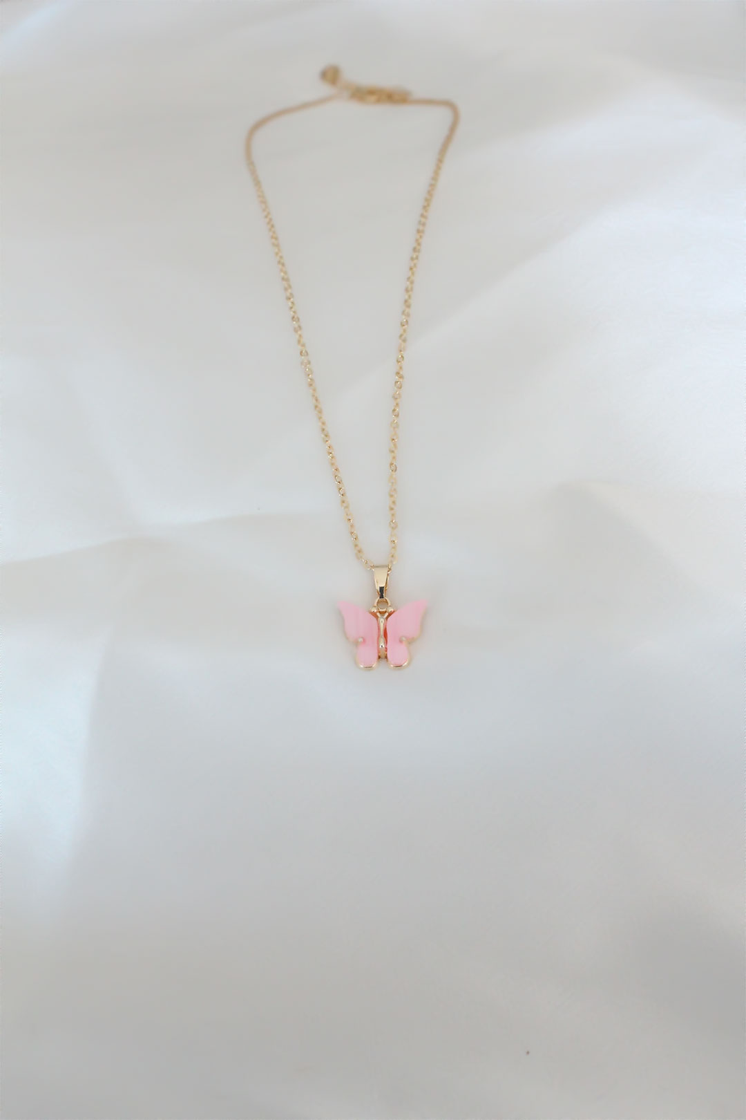 Gold Kaplama Pembe Sedefli Kelebek Kolye