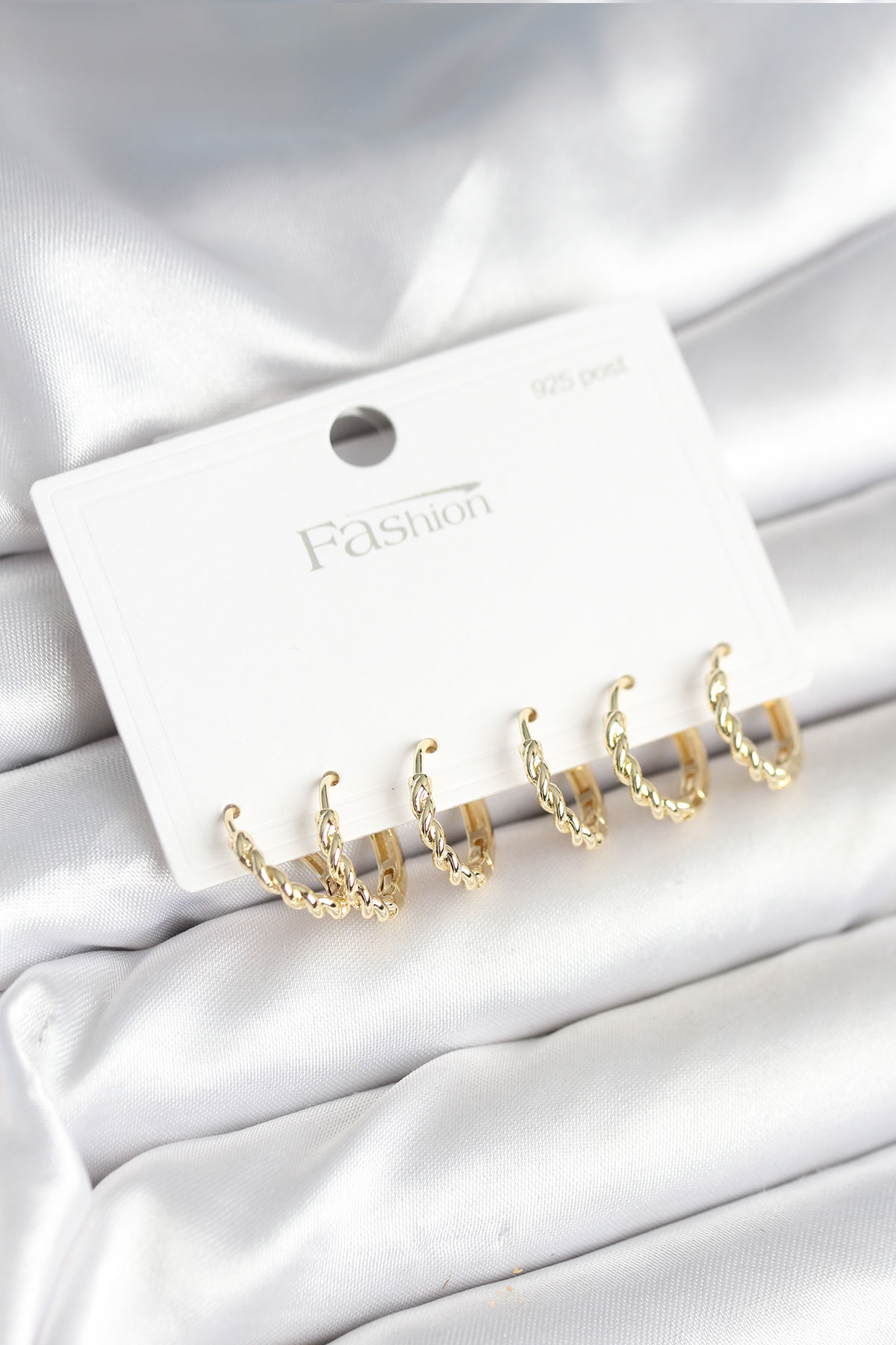 Gold Renk Burgu Halka Model 925 Ayar Gümüş Çivili Pirinç Küpe Seti