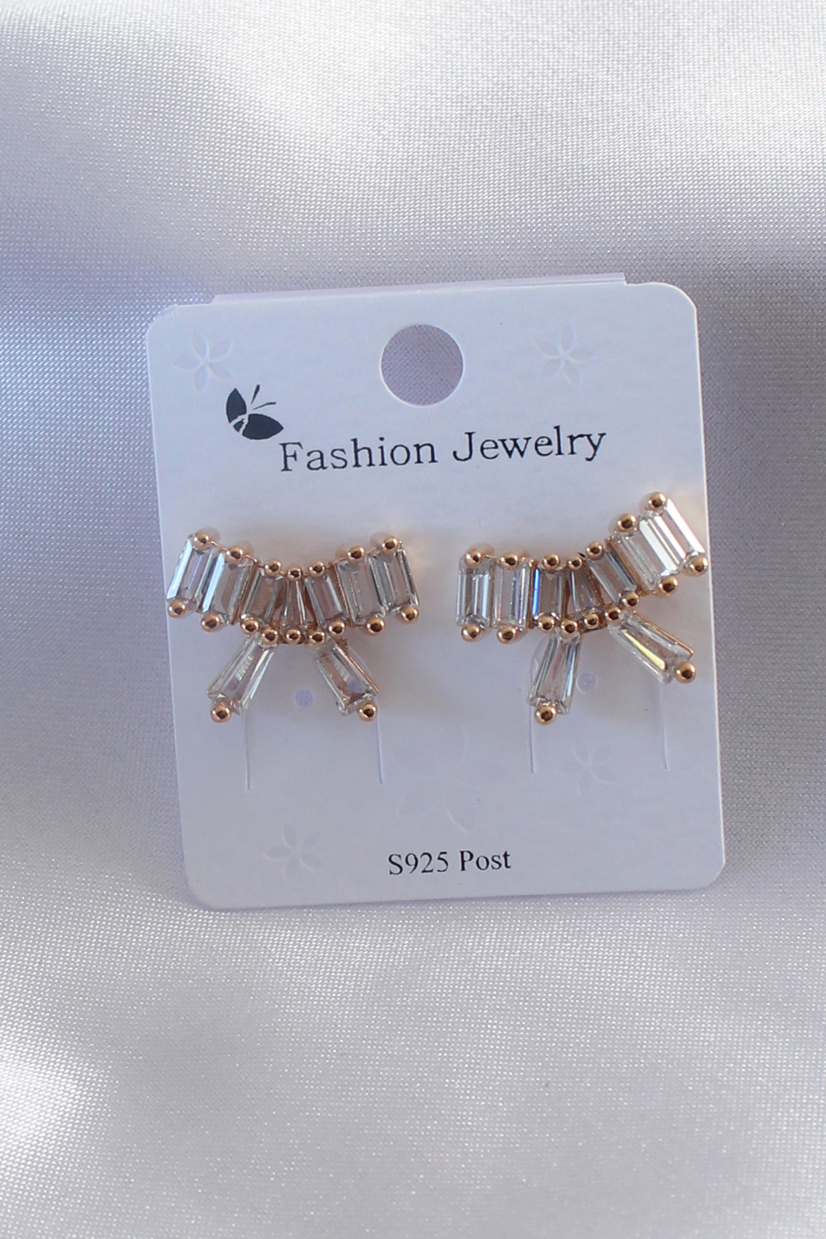 Gold Renk Kurdele Model Zirkon Taşlı Kadın Küpe