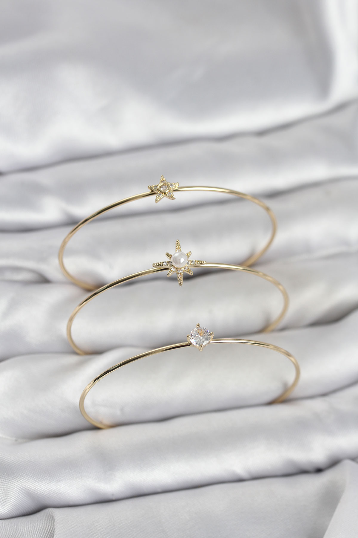 Gold Renk Kutup Yıldızı Model Zirkon Taşlı 3'lü Kadın Bileklik Kombini
