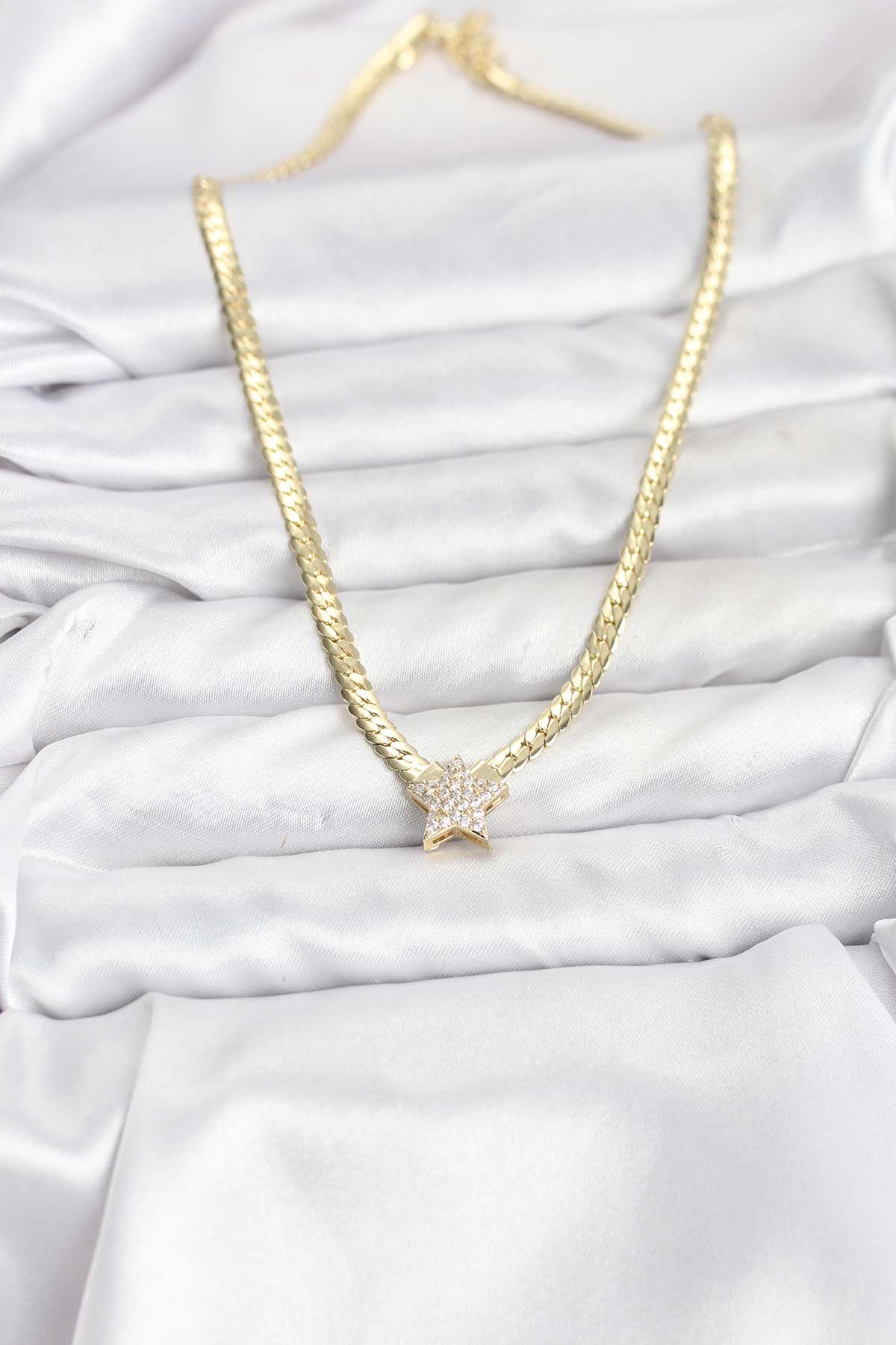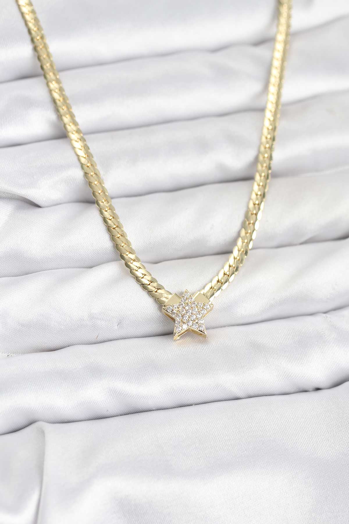 Gold Renk Pirinç Yıldız Zirkon Taşlı Kadın Kolye