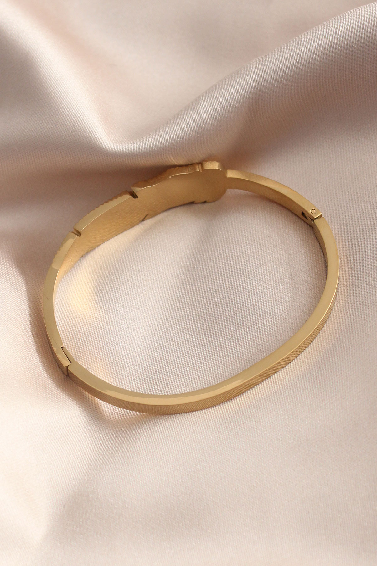 Gold Renk Yaprak Model Zirkon Taş Detay Kelepçe Kadın Bileklik