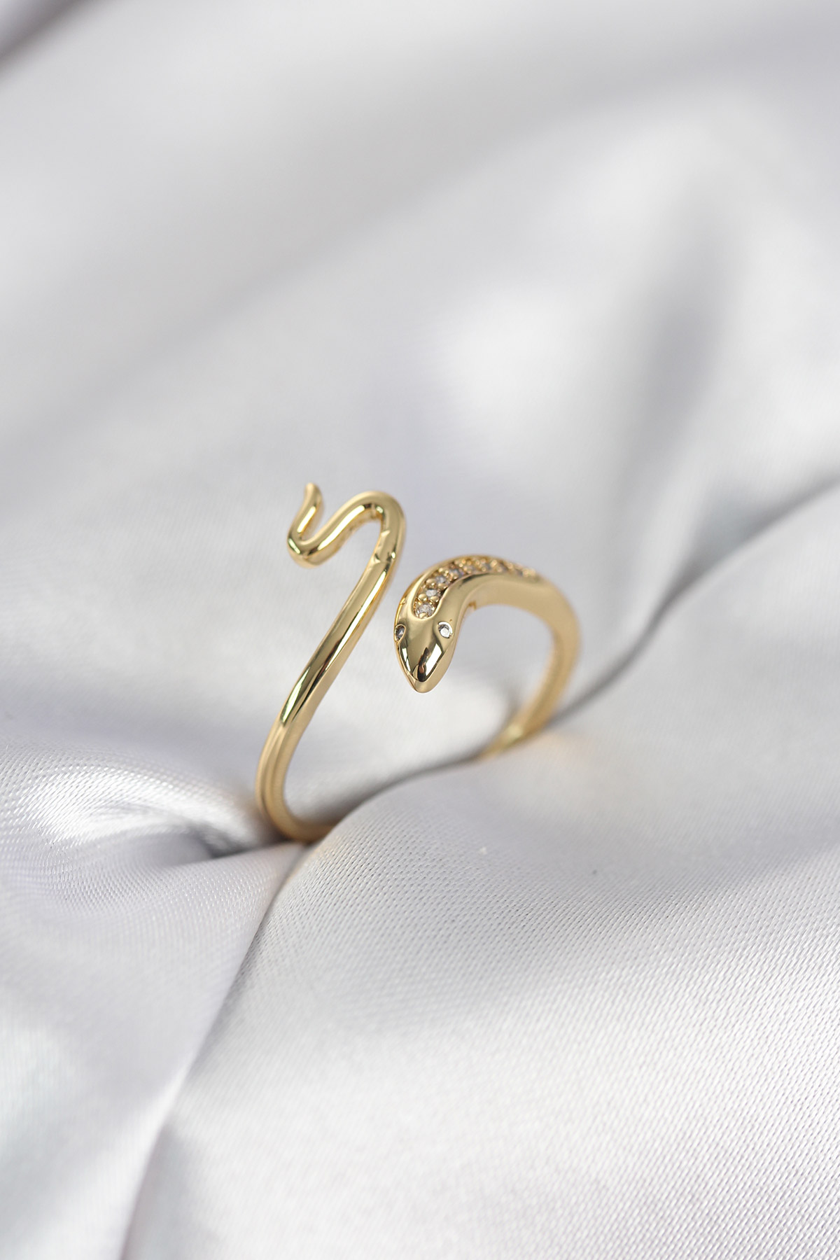 Gold Renk Yılan Model Zirkon Taşlı Kadın Yüzük