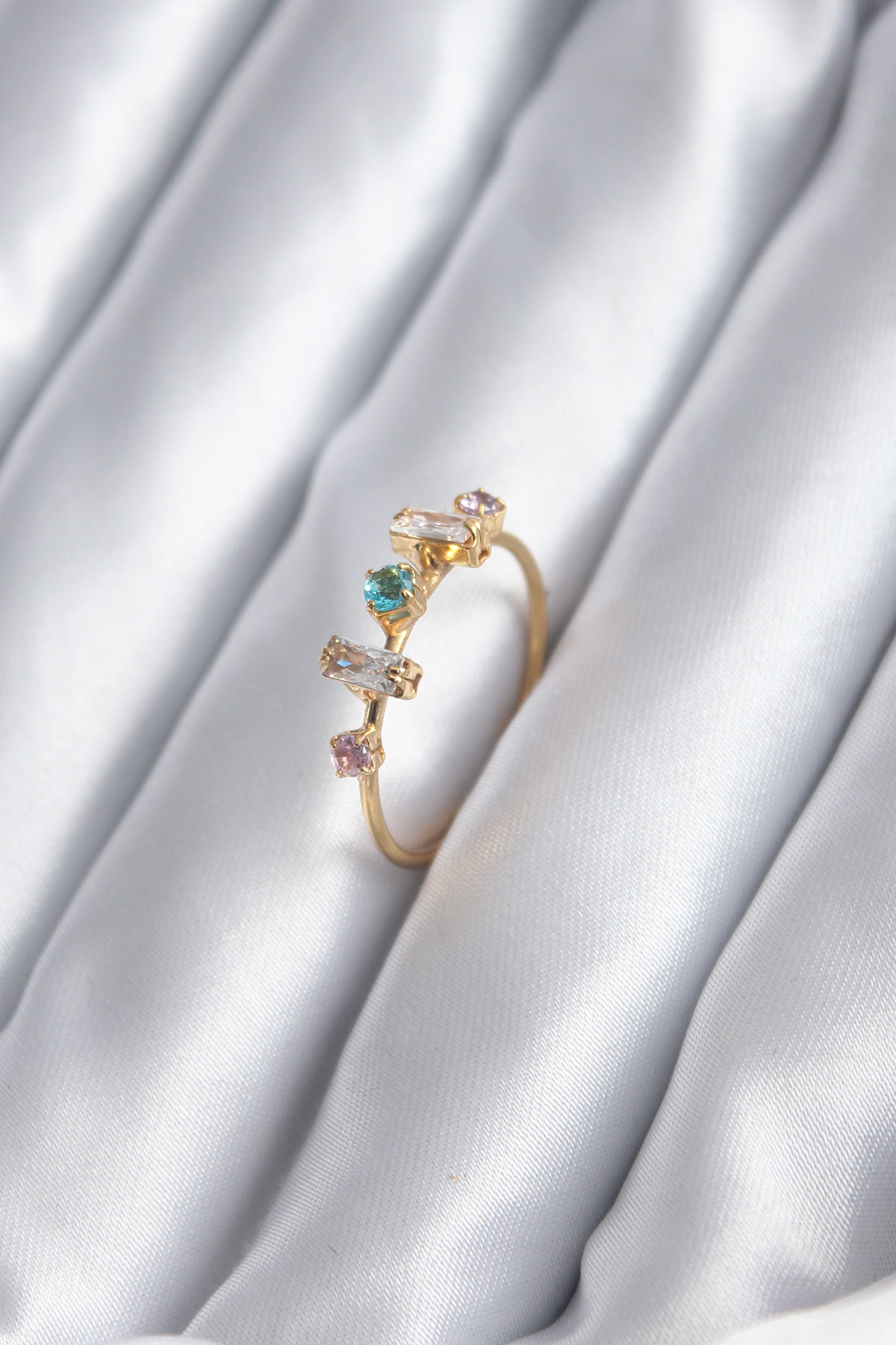 Gold Renk Zirkon Taşlı Renkli Zirkon Taşlı Kadın Yüzük