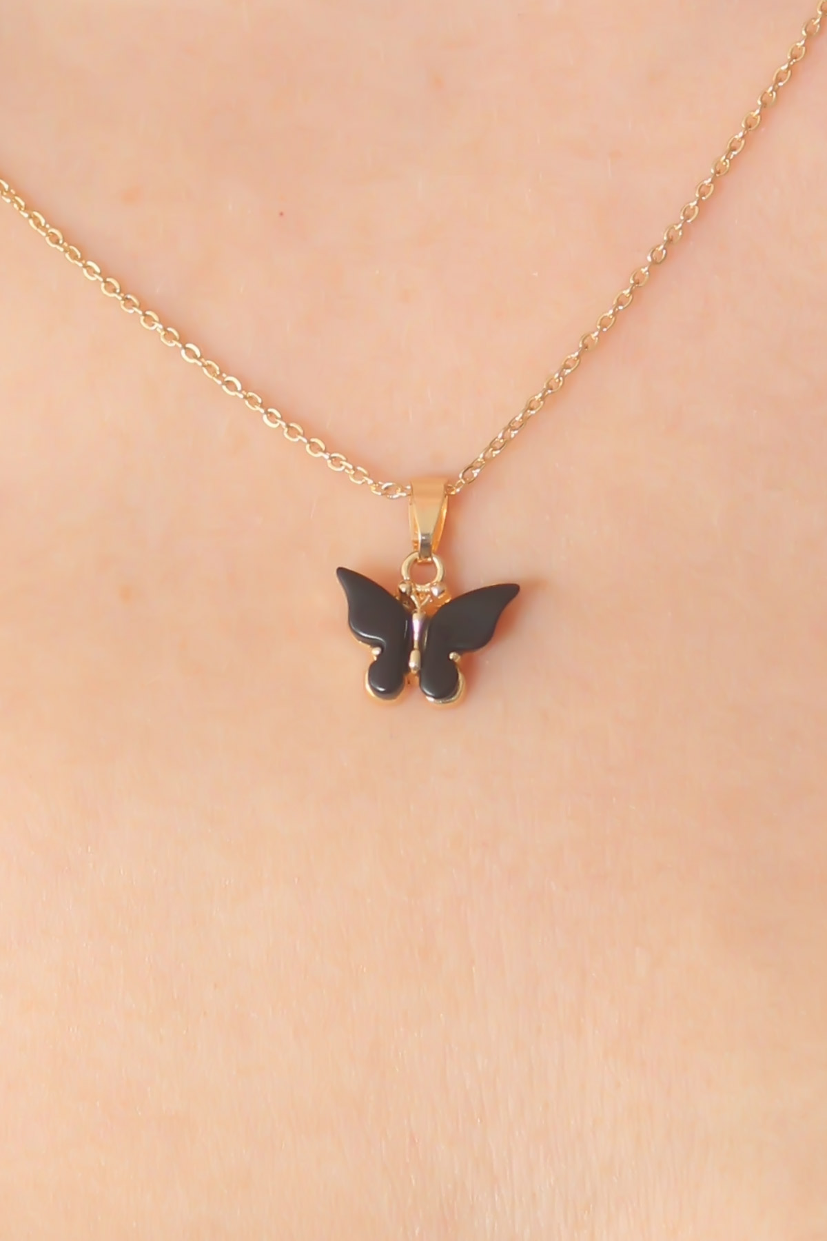 Gold Siyah Renk Kelebek Figür Kadın Kolye
