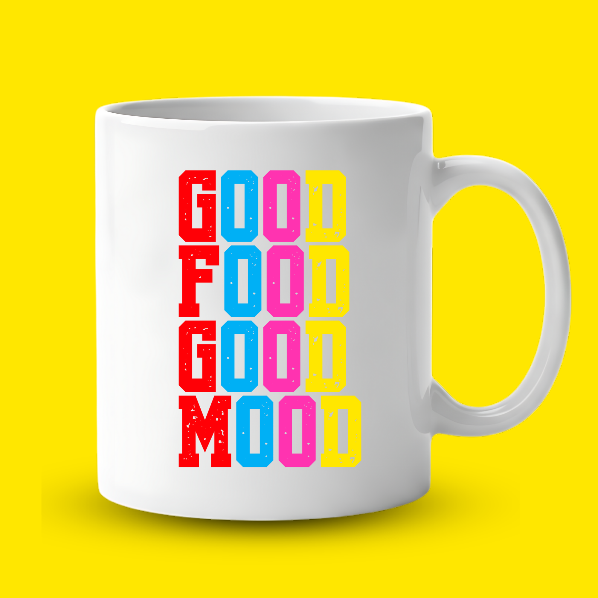 good food good mood kupa, yazılı kupa, renkli kupa, baskılı kupa, tasarım kupa, seramik kahve kupası, mutfak kupası, hediye kupa, kupa model 224