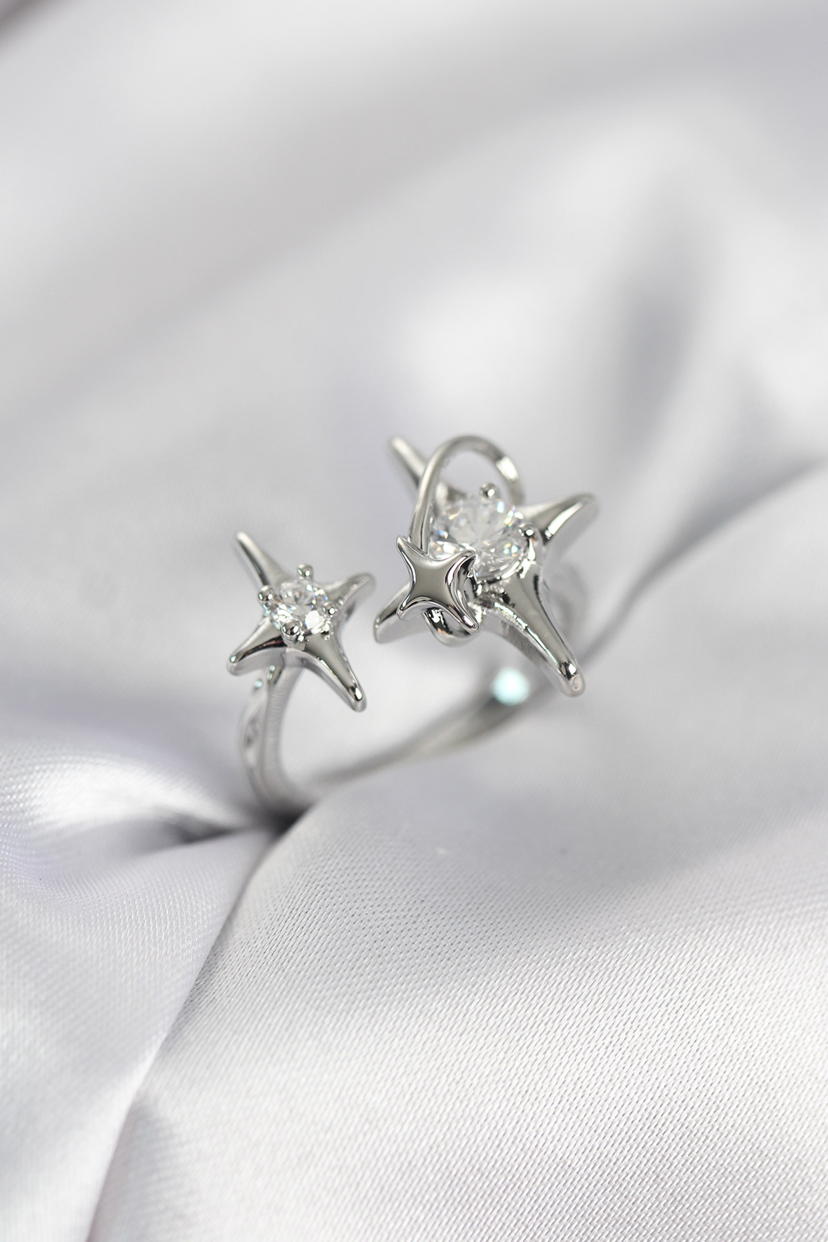 Gümüş Renk Kutup Yıldızı Model Zirkon Taşlı Kadın Yüzük