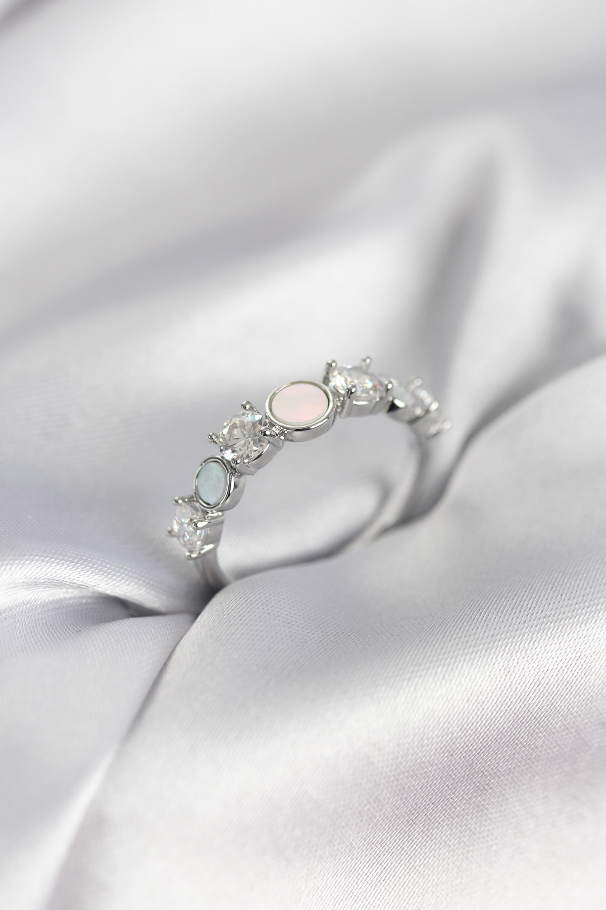 Gümüş Renk Minimal Plaka ve Zirkon Taşlı Kadın Yüzük