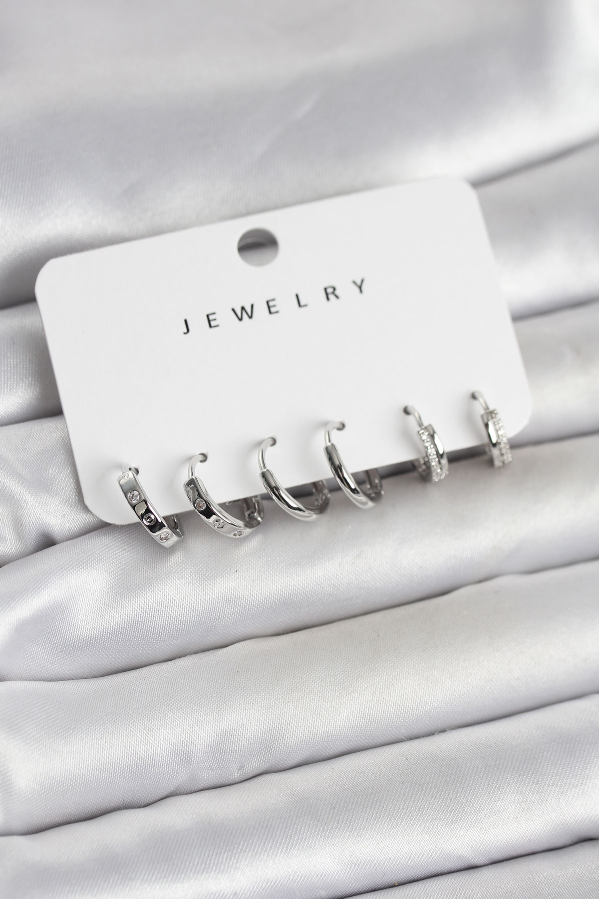 Gümüş Renk Pirinç 3 Çift Kadın Küpe Seti