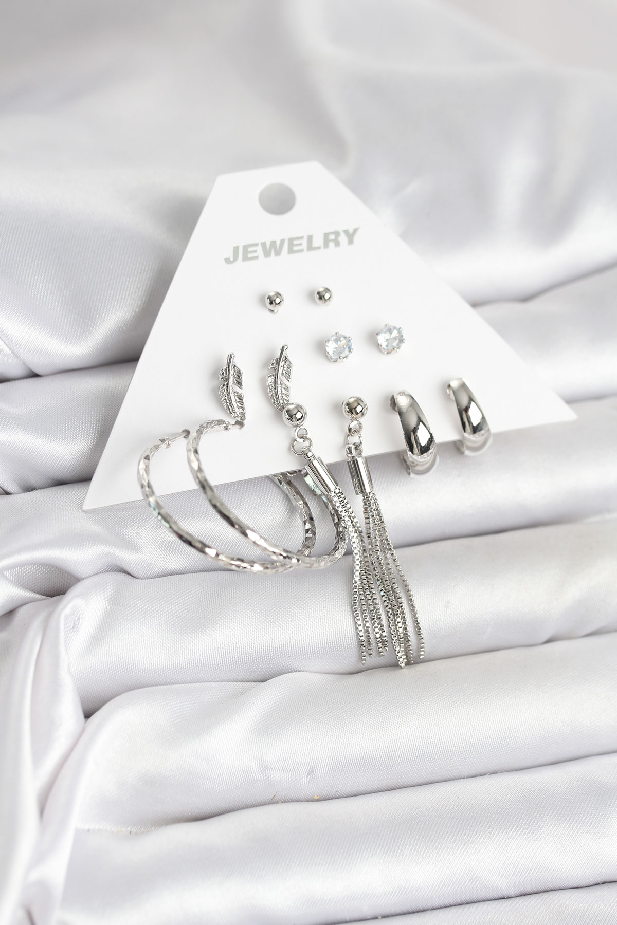 Gümüş Renk Pirinç 6 Çiftli Kadın Küpe Seti