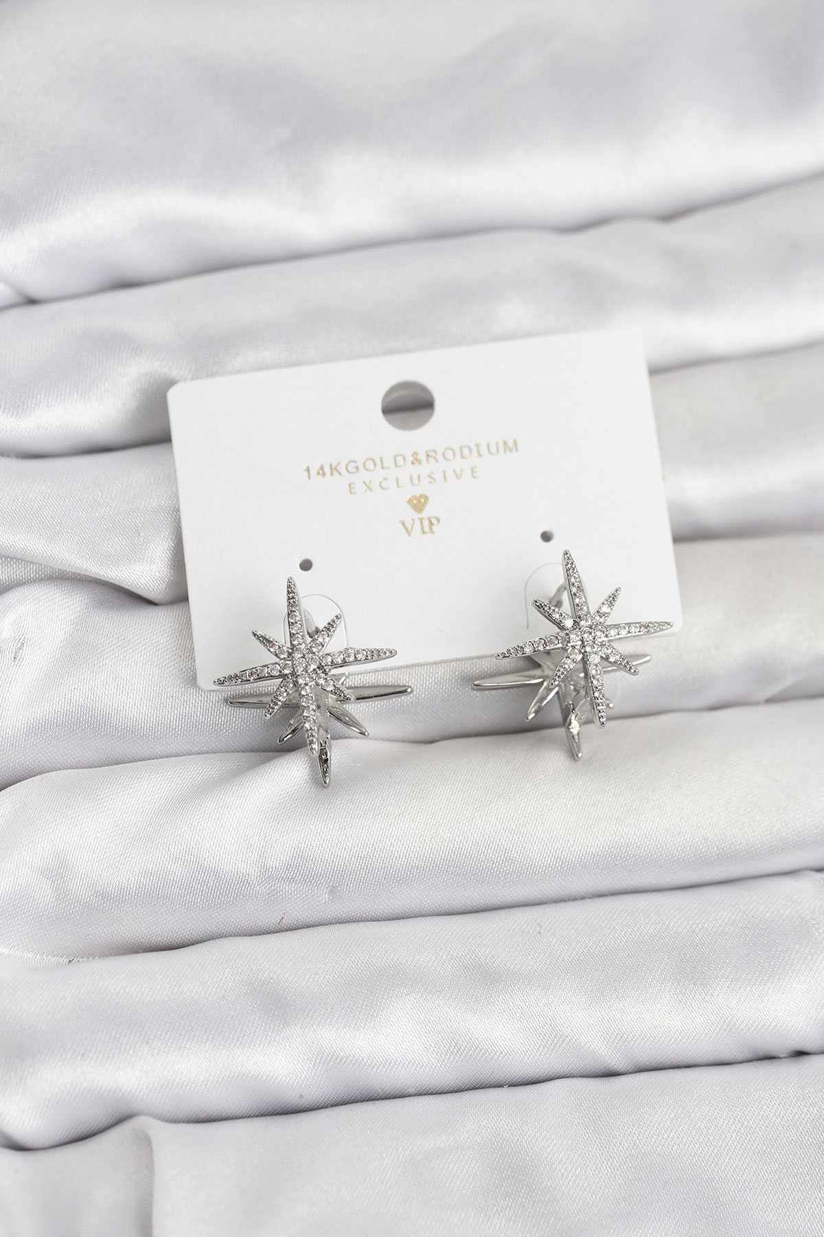 Gümüş Renk Pirinç Çift Taraflı Kutup Yıldızı Kadın Küpe
