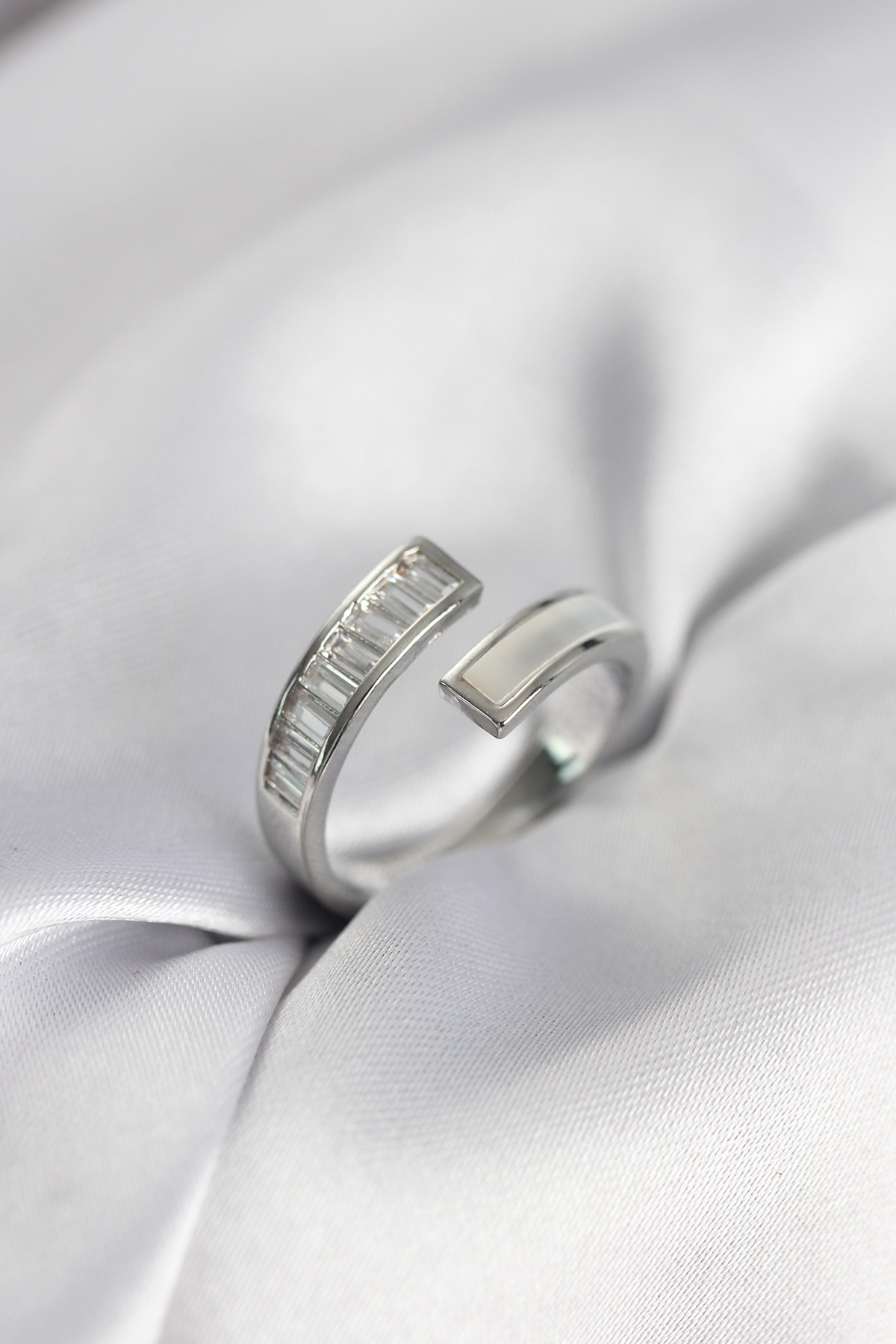 Gümüş Renk Sedefli Baget Zirkon Taşlı Kadın Yüzük