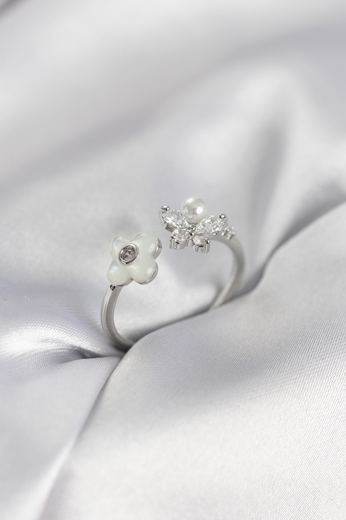 Gümüş Renk Sedefli Çiçek Model Kadın Yüzük