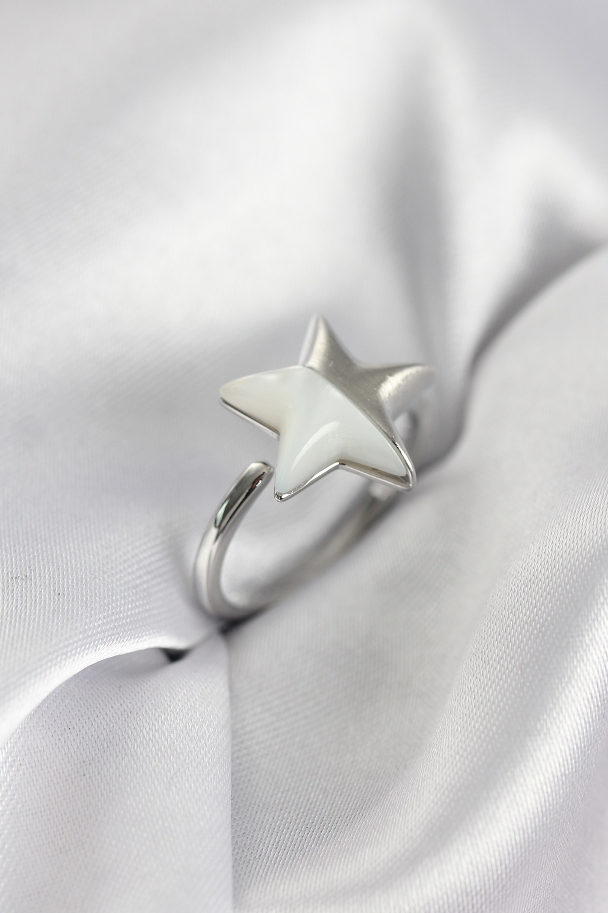 Gümüş Renk Sedefli Yıldız Model Kadın Yüzük