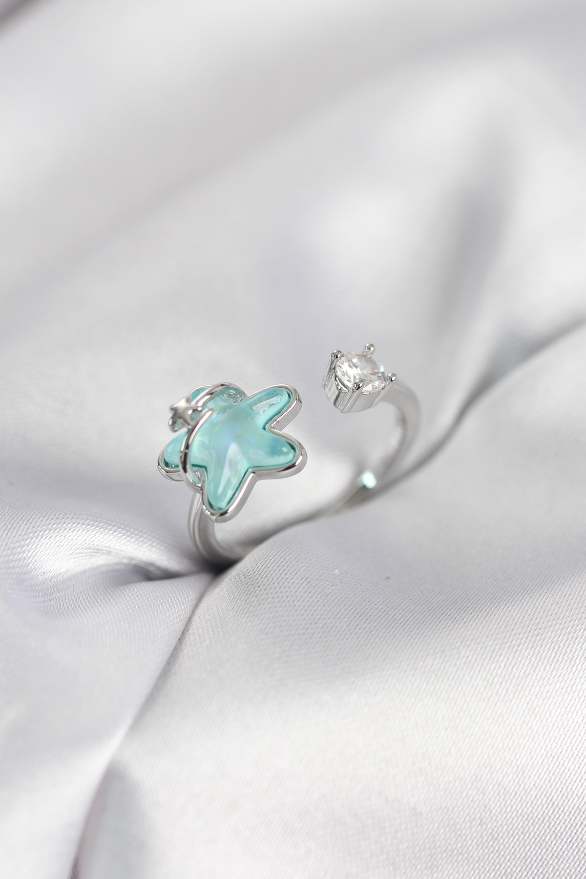 Gümüş Renk Turkuaz Yıldız Model Kadın Yüzük