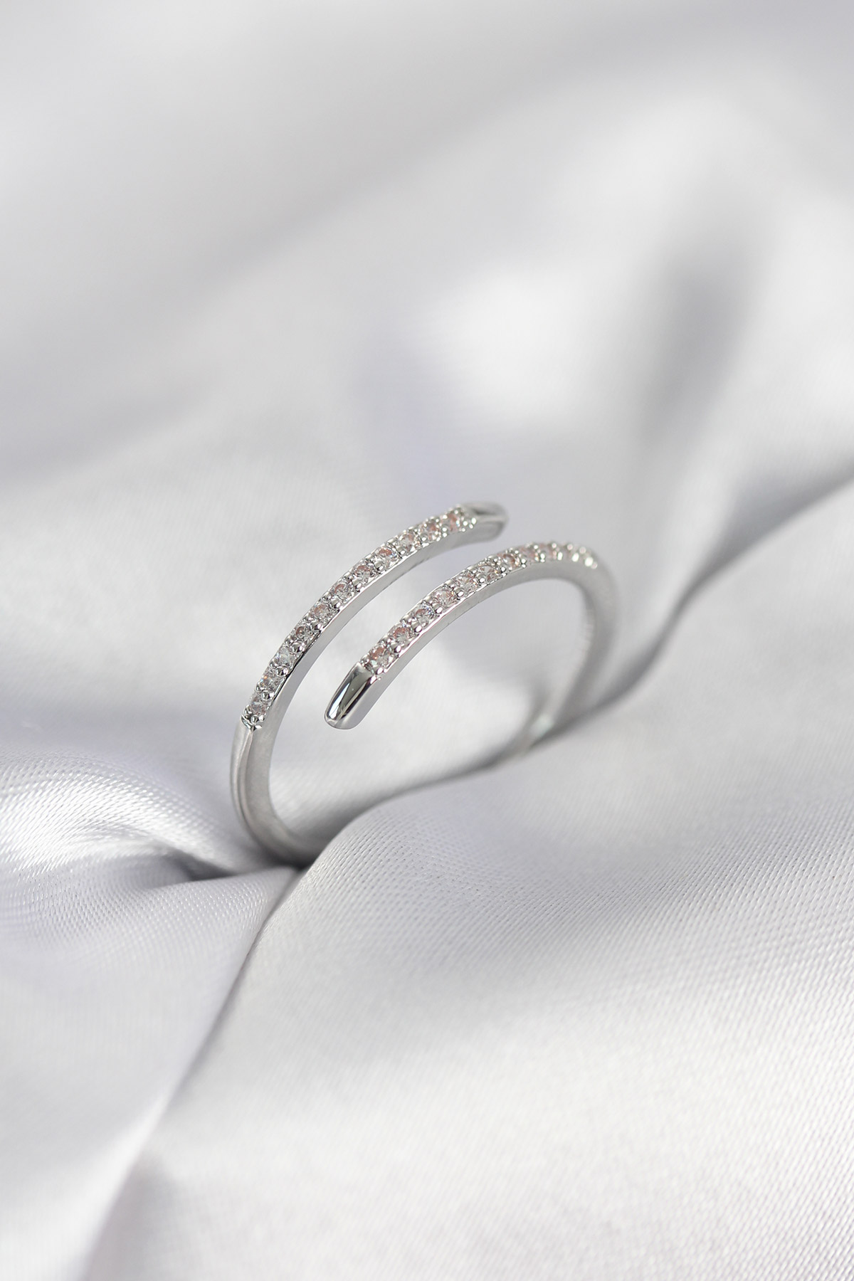 Gümüş Renk Yılan Kuyruk Model Zirkon Taşlı Kadın Yüzük