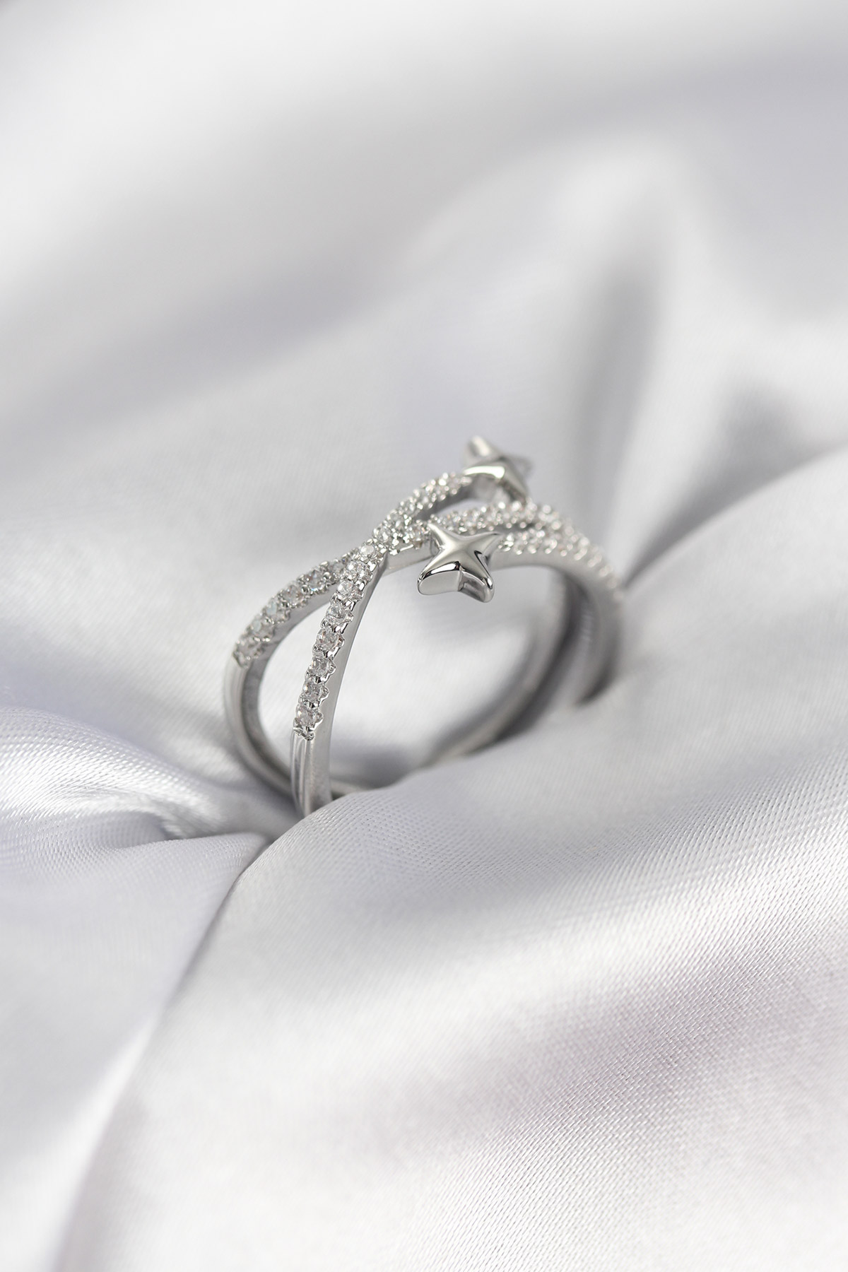 Gümüş Renk Zirkon Taşlı Halley Model Kadın Yüzük