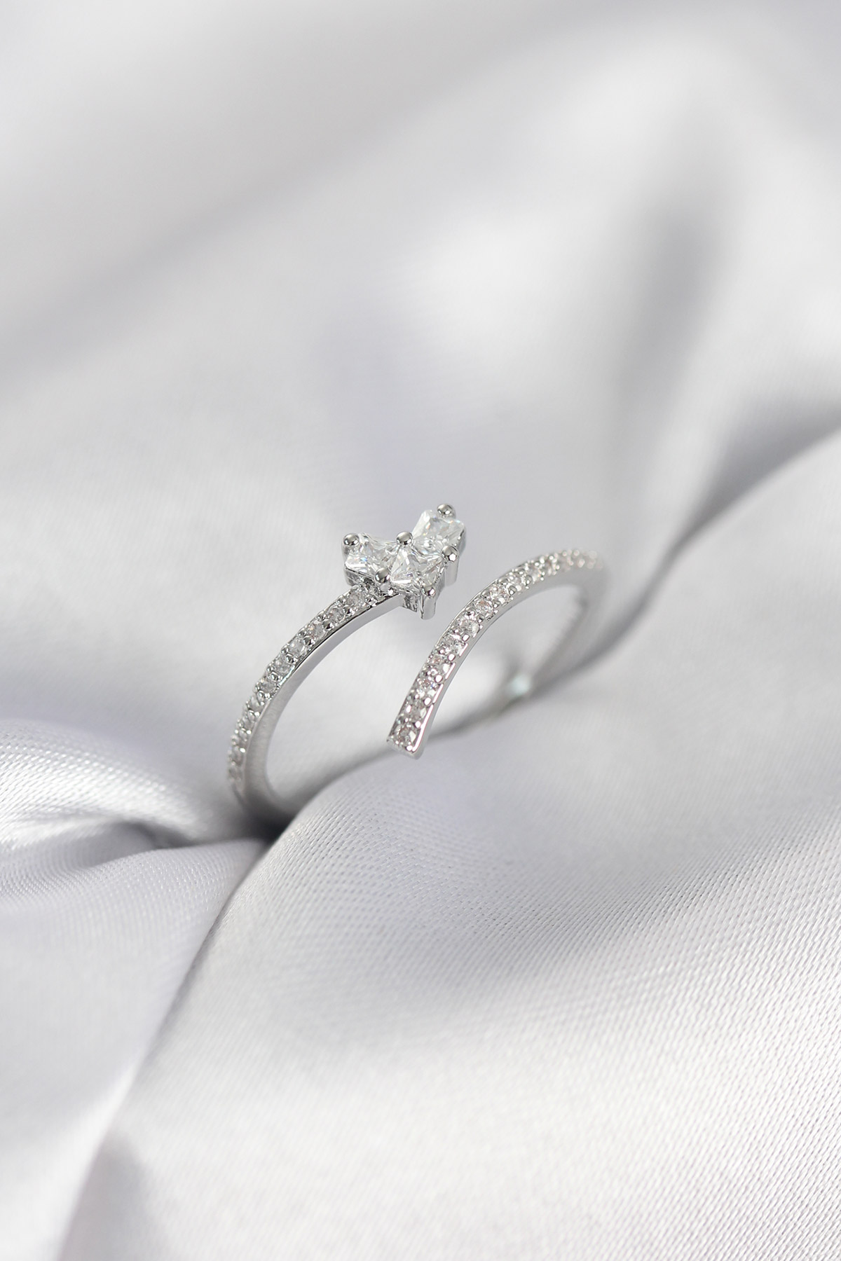 Gümüş Renk Zirkon Taşlı Kuyruklu Kalp Model Kadın Yüzük