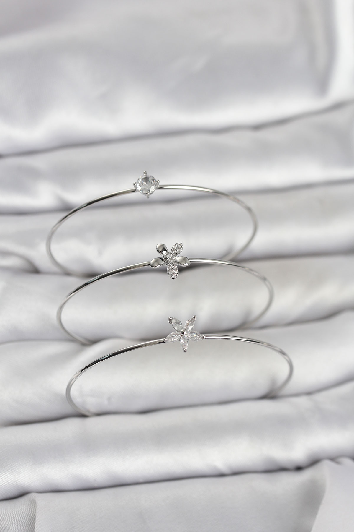 Gümüş Renk Zirkon Taşlı Pirinç 3'lü Kadın Bileklik Kombini