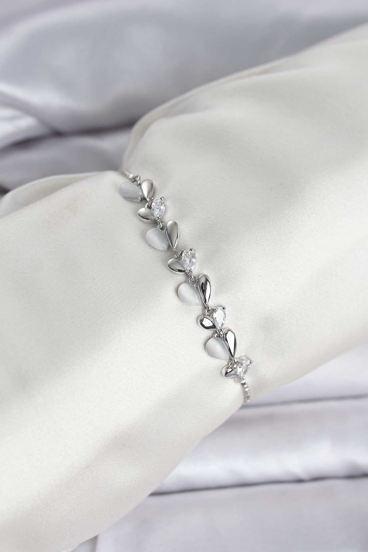 Gümüş Renk Zirkon Taşlı Sıralı Damla Model Asansörlü Kadın Bileklik