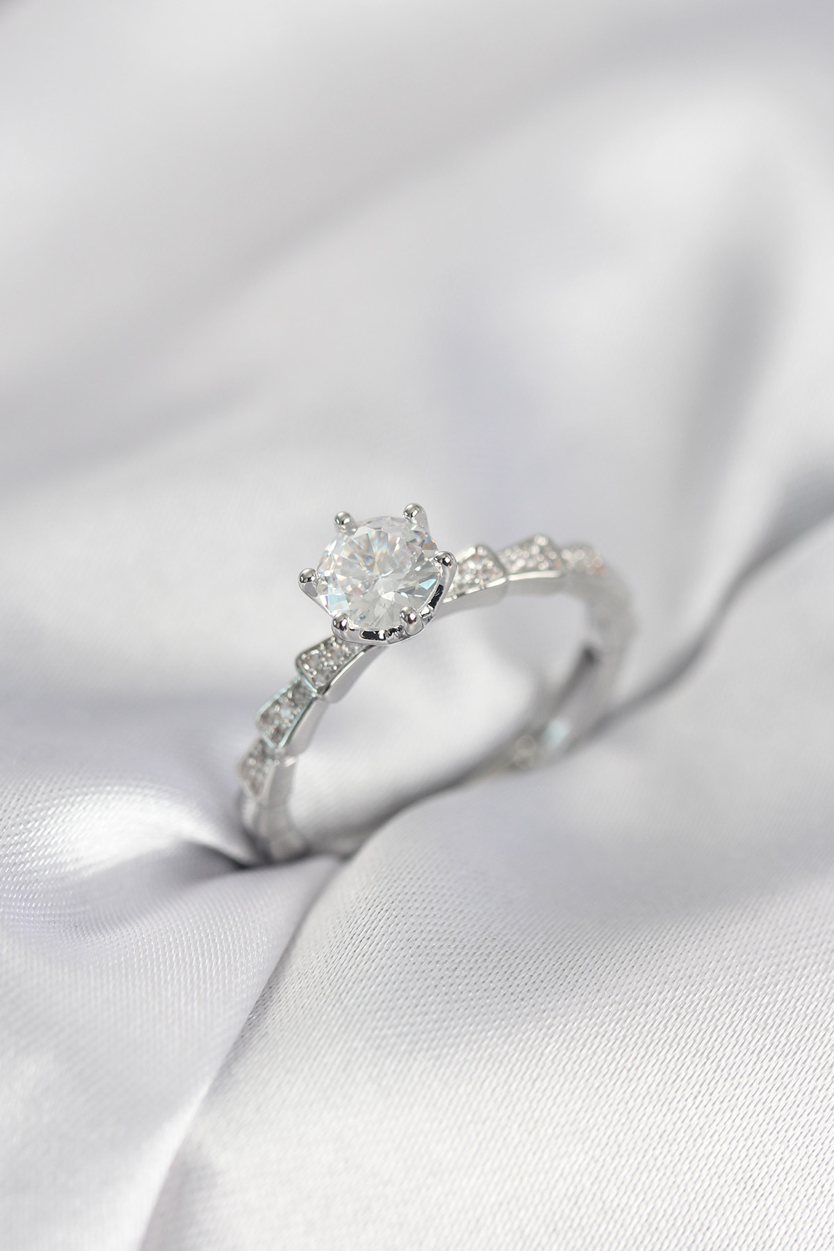 Gümüş Renk Zirkon Taşlı Tek Taş Model Kadın Yüzük