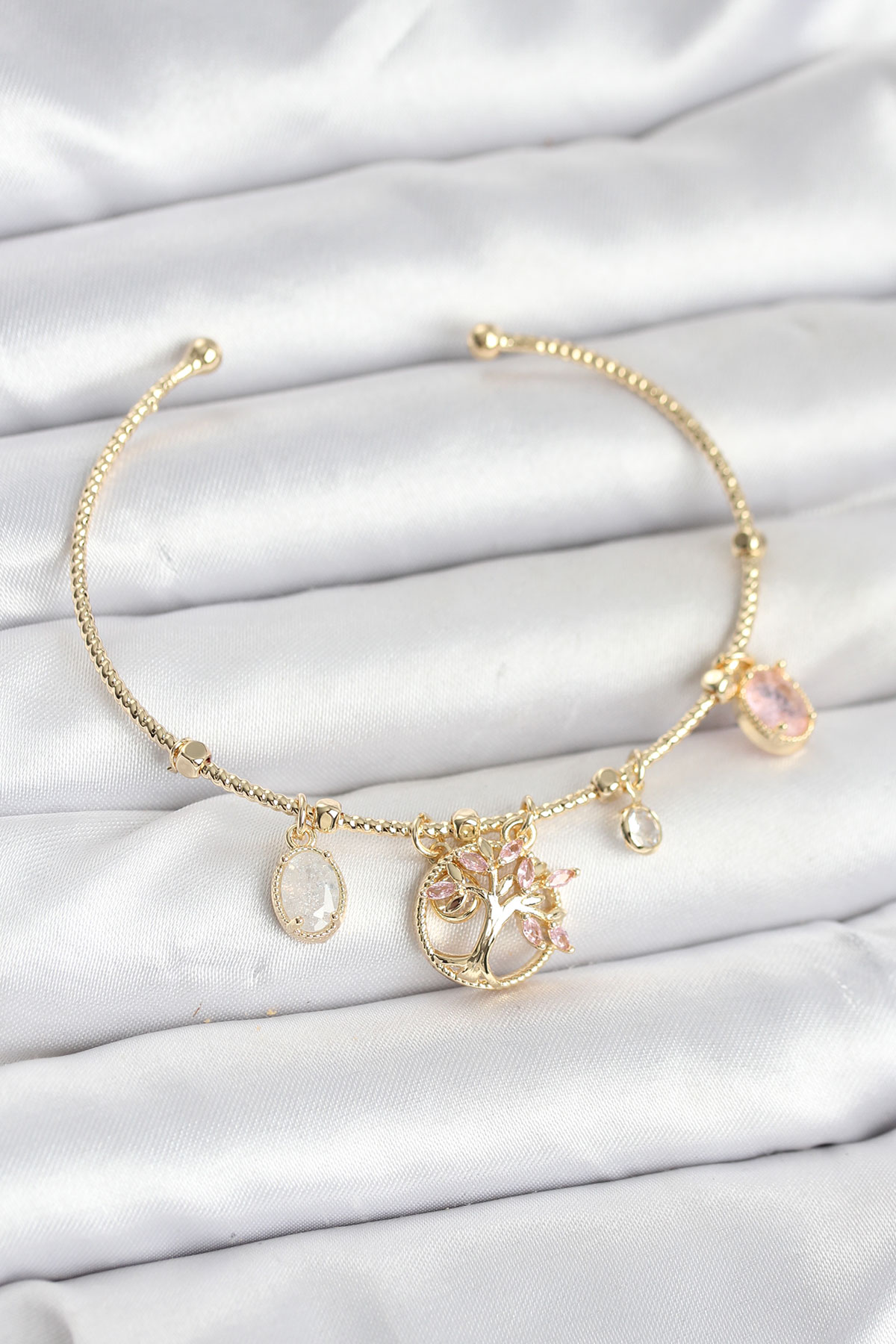 Hayat Ağacı Charmlı Gold Renk Pirinç Kadın Bileklik