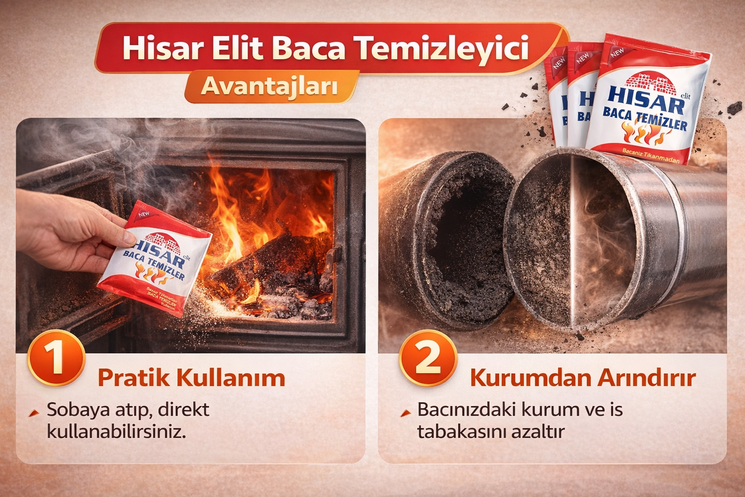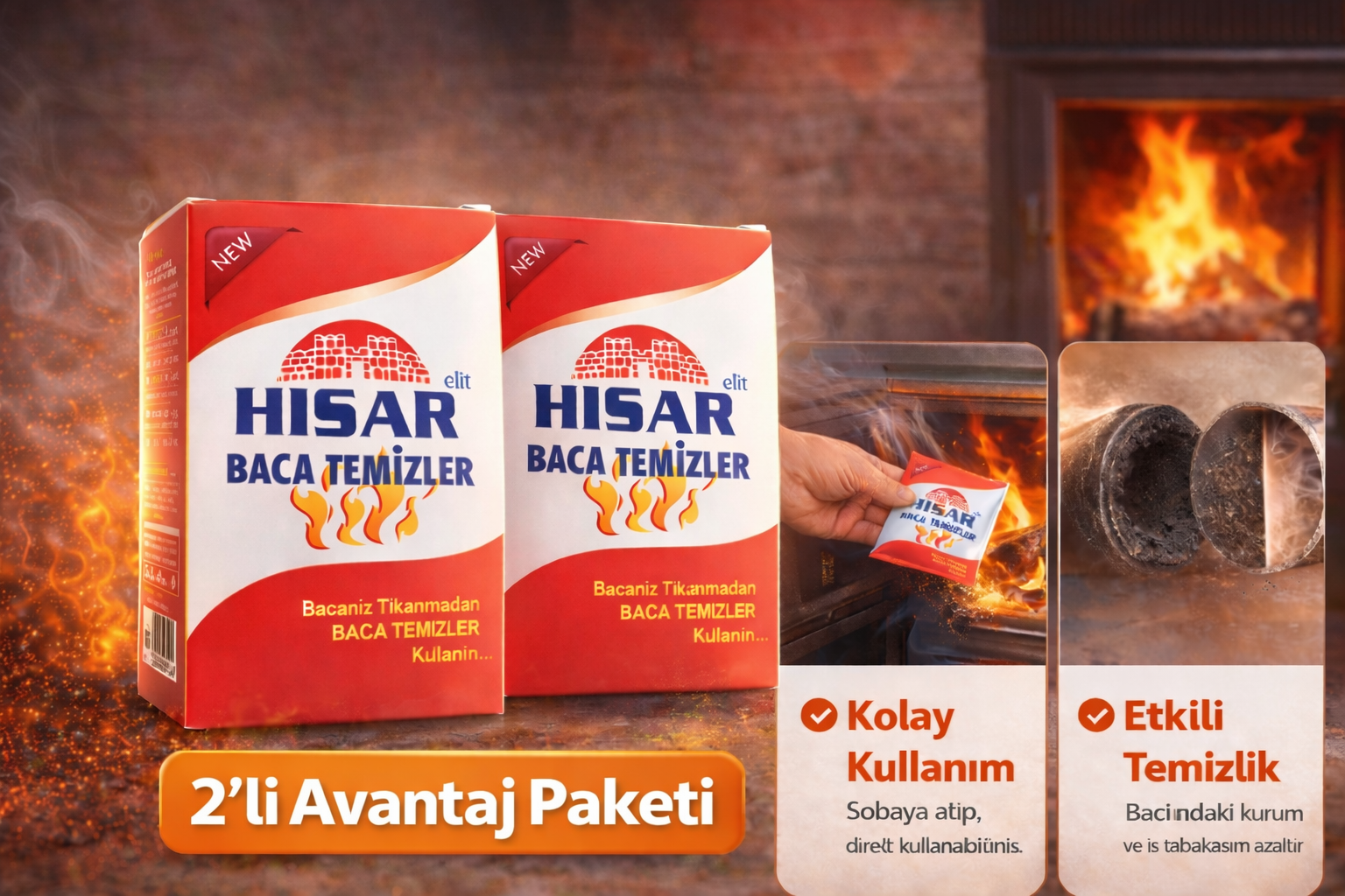 Hisar Elit Baca Temizleyici Soba ve Şömine İçin Kurum Temizleme Ürünü 2 Adet