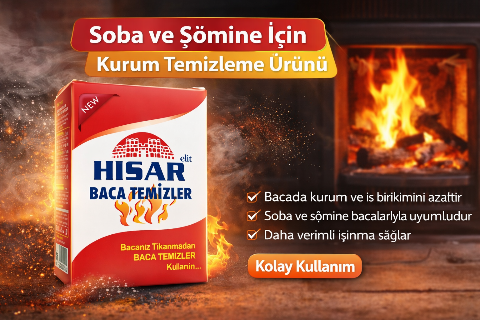 Hisar Elit Baca Temizleyici Soba ve Şömine İçin Kurum Temizleme Ürünü