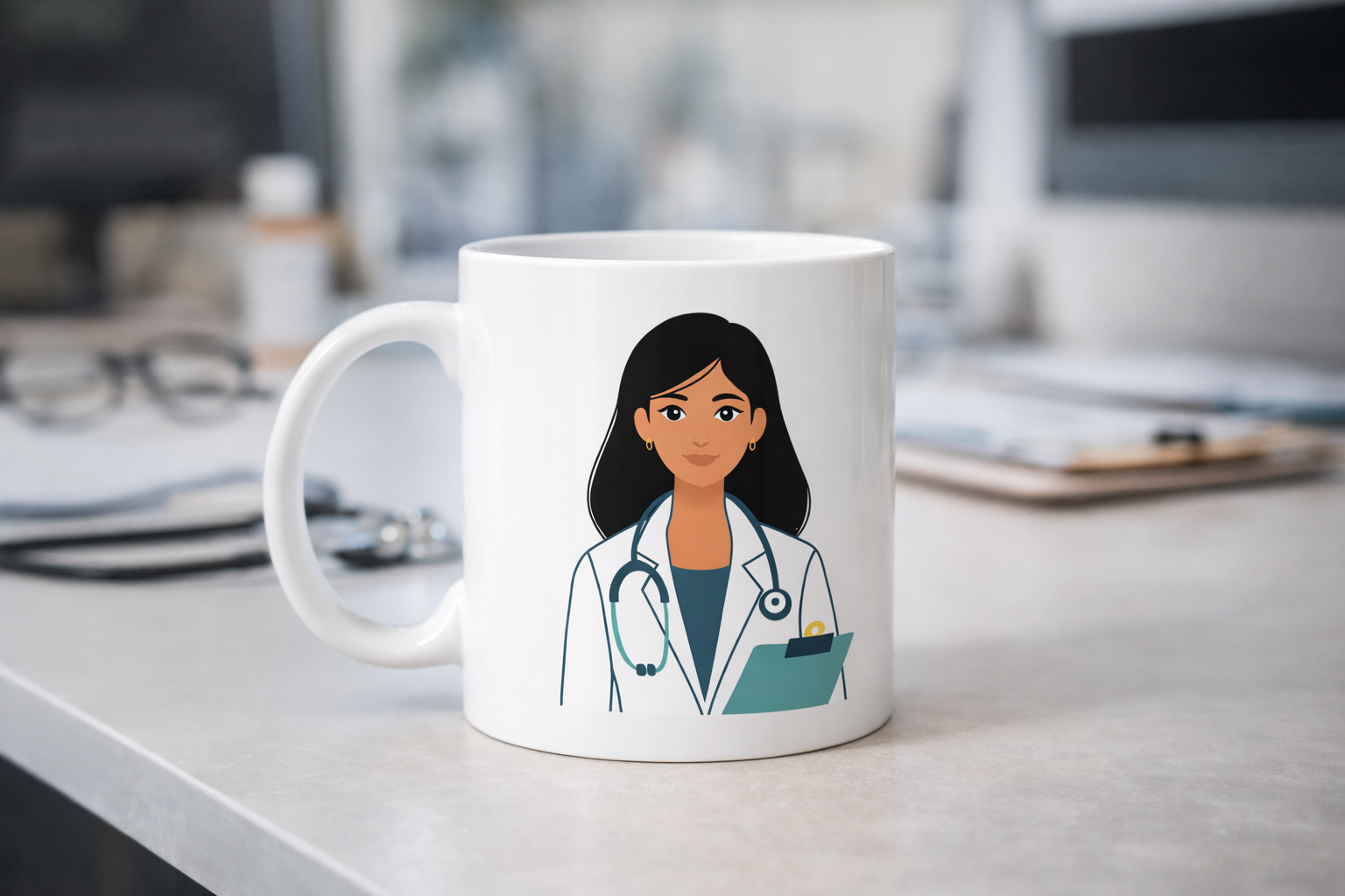 Minimal ve zarif çizim tarzı sayesinde bu kupa sadece bir içecek kupası değil, aynı zamanda doktorluk mesleğinin değerini hatırlatan özel bir tasarım sunar.