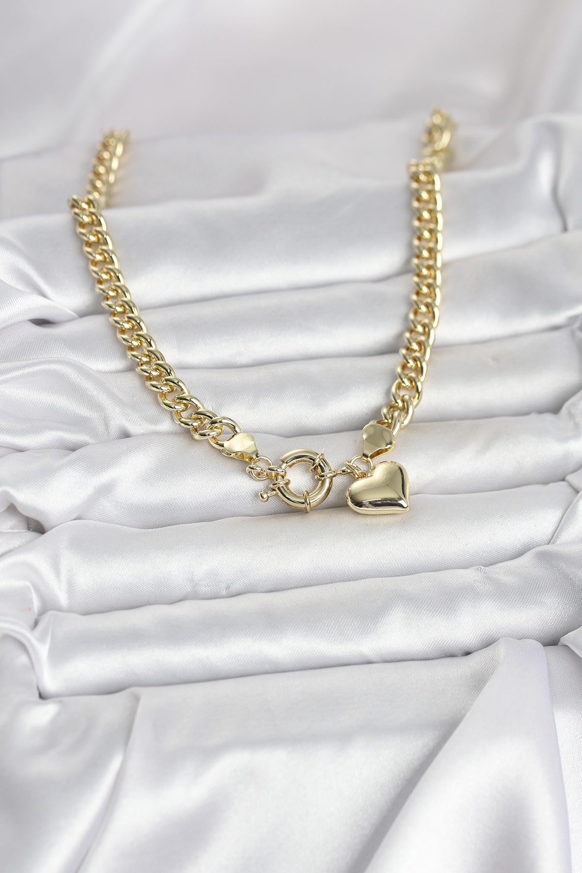 Kalp Detaylı Gold Renk Pirinç Kadın Kolye