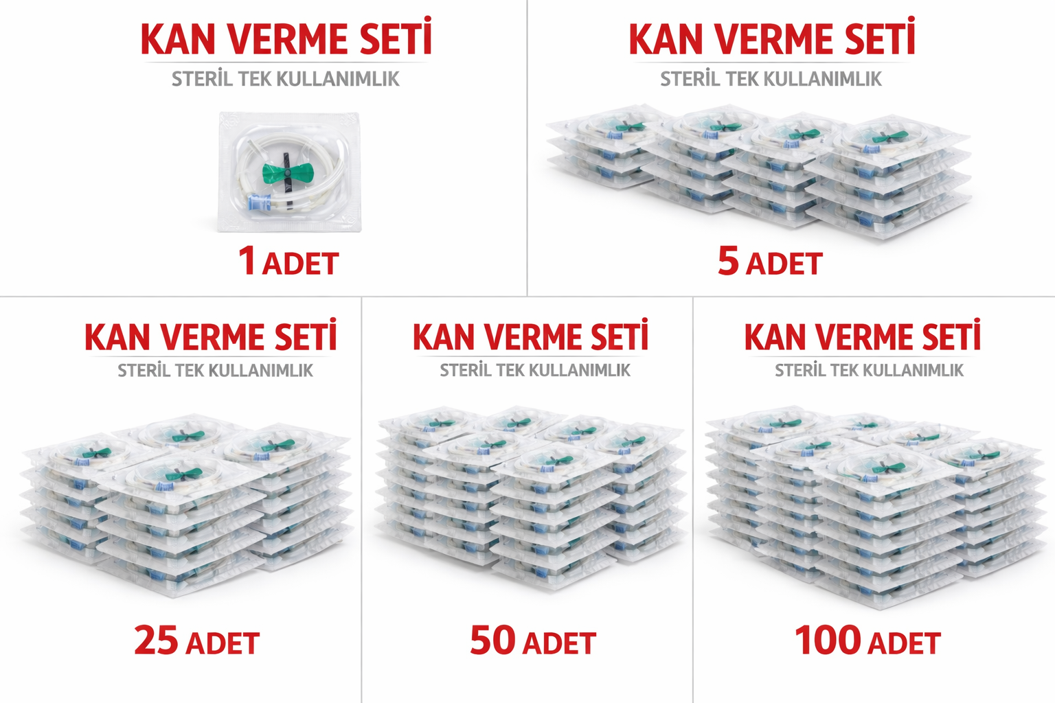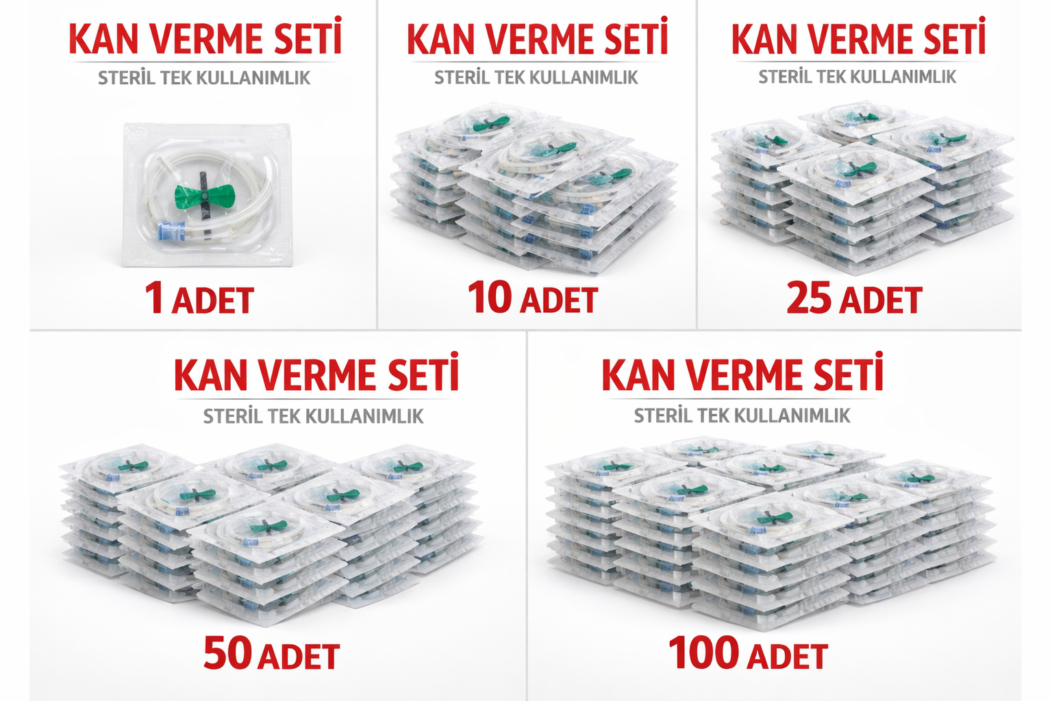 kan verme seti, steril kan alma seti, tek kullanımlık kan toplama seti, medikal kan verme seti, hastane kan alma ekipmanı, laboratuvar kan seti, kan bağışı seti, 1 adet kan verme seti, 5 adet kan seti, 10 adet kan verme seti, 25 adet kan seti, 50 adet kan verme seti, 100 adet kan seti