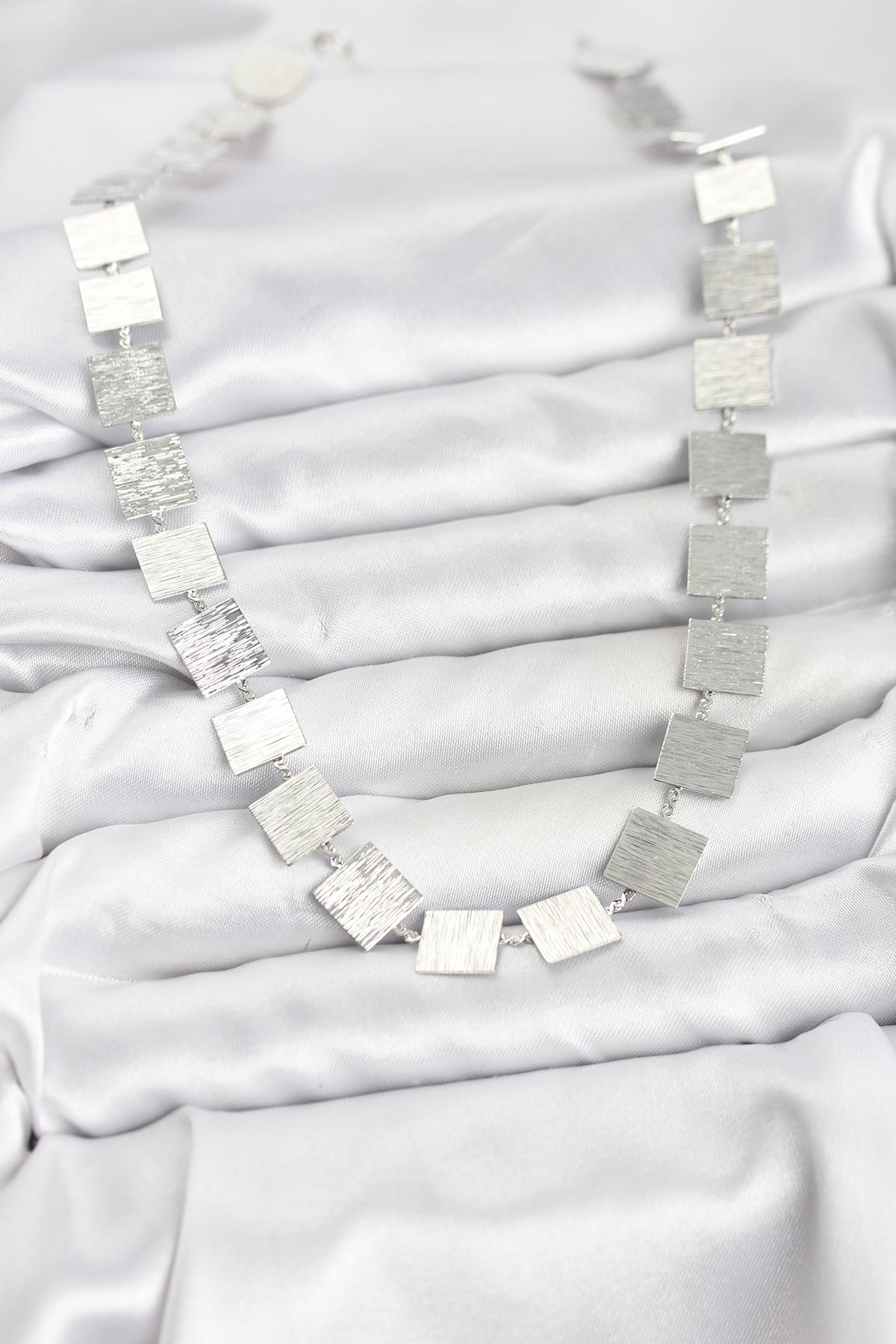 Kare Plaka Model Gümüş Renk Kadın Kolye