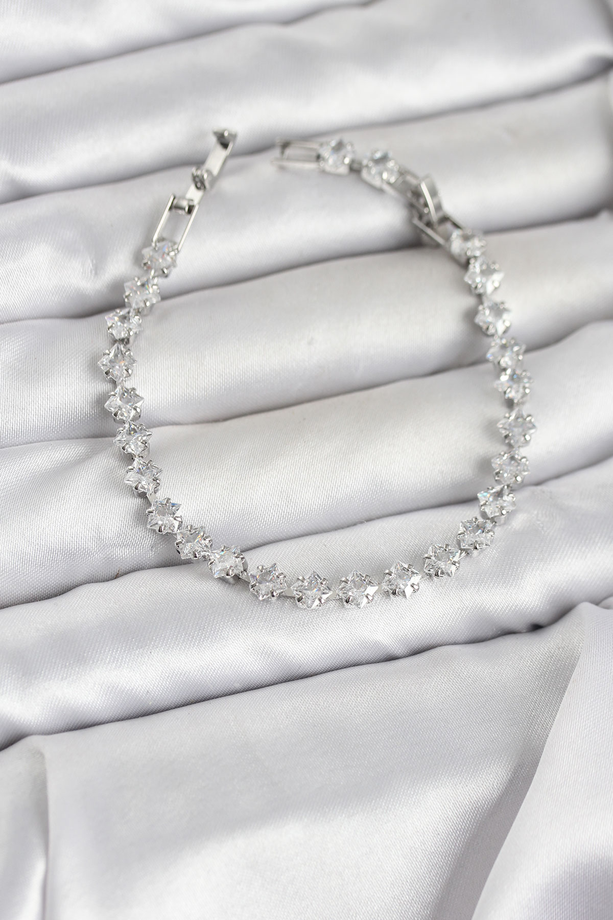 Kare Zirkon Taşlı Gümüş Renk Pirinç Su Yolu Kadın Bileklik