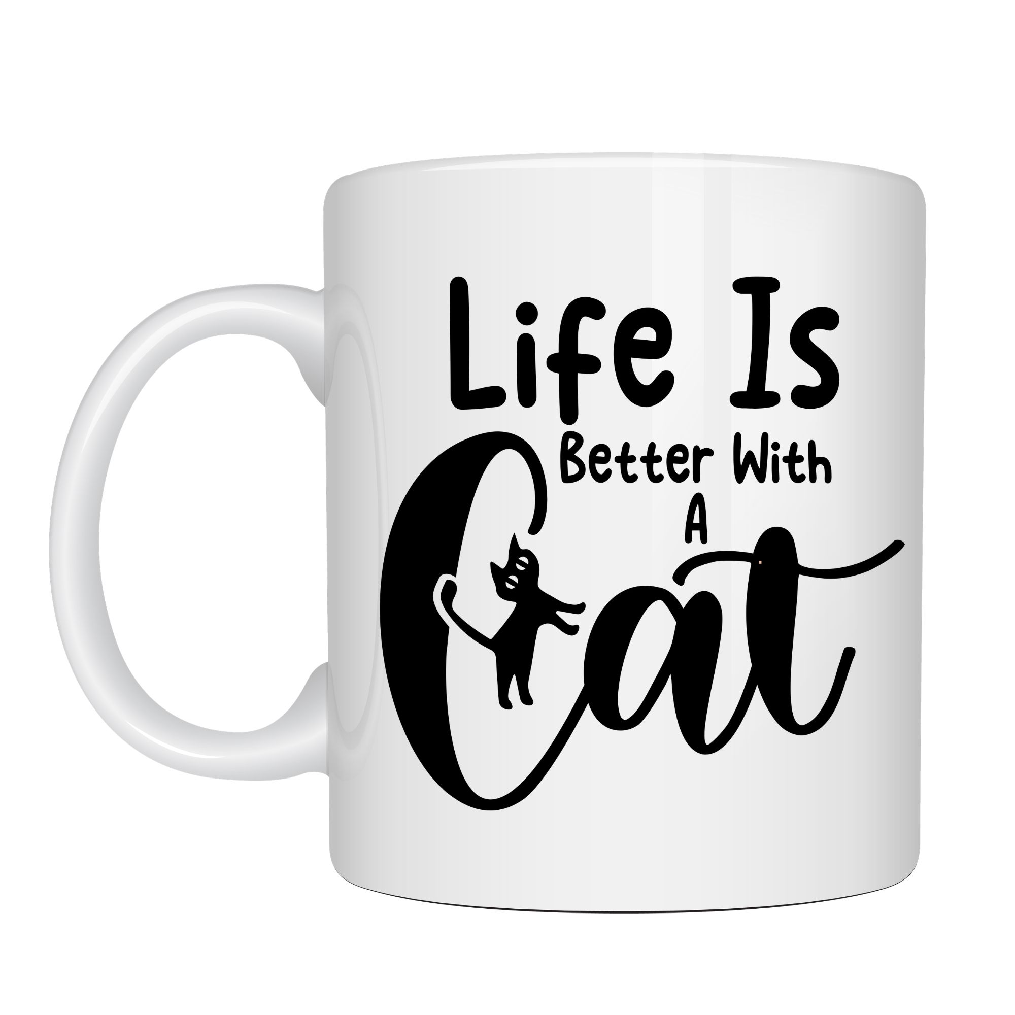 Kedi Severlere Özel “Life Is Better With A Cat” Kupa MODEL 181 – Sevimli Kedi Tasarımlı Porselen Kahve Kupası – Hediyelik Kupa