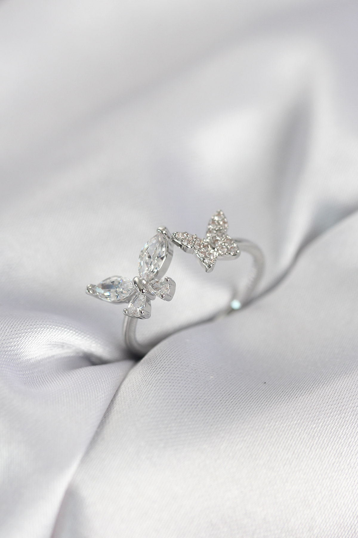 Kelebek Model Zirkon Taşlı Gümüş Renk Kadın Yüzük