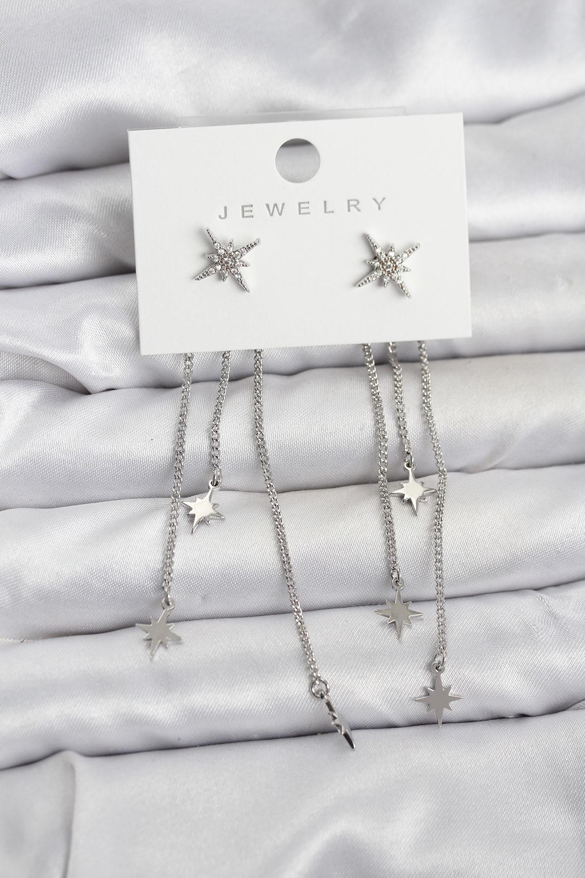 Kutup Yıldızı Model Gümüş Renk Pirinç Sallantılı Kadın Küpe
