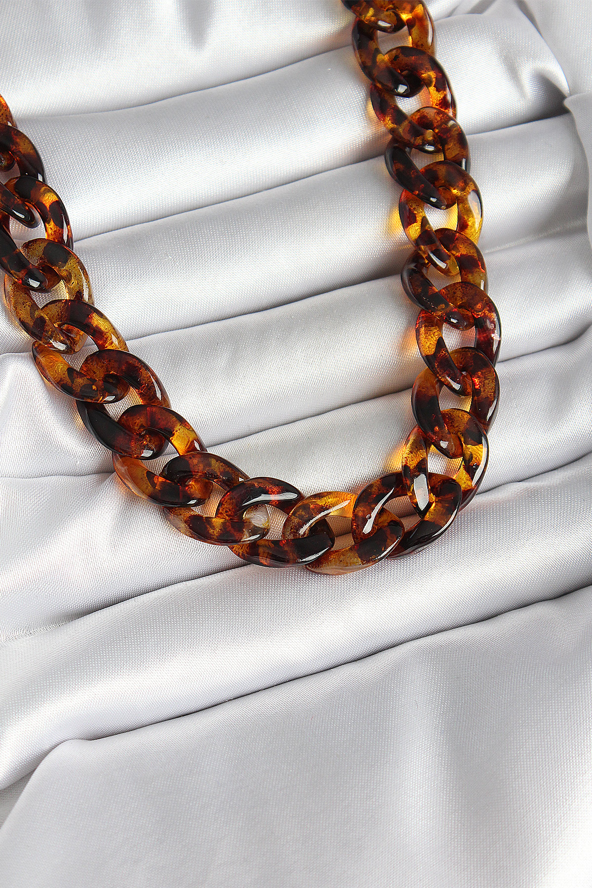 Leopar Desenli Mika Kalın Zincir Kadın Kolye