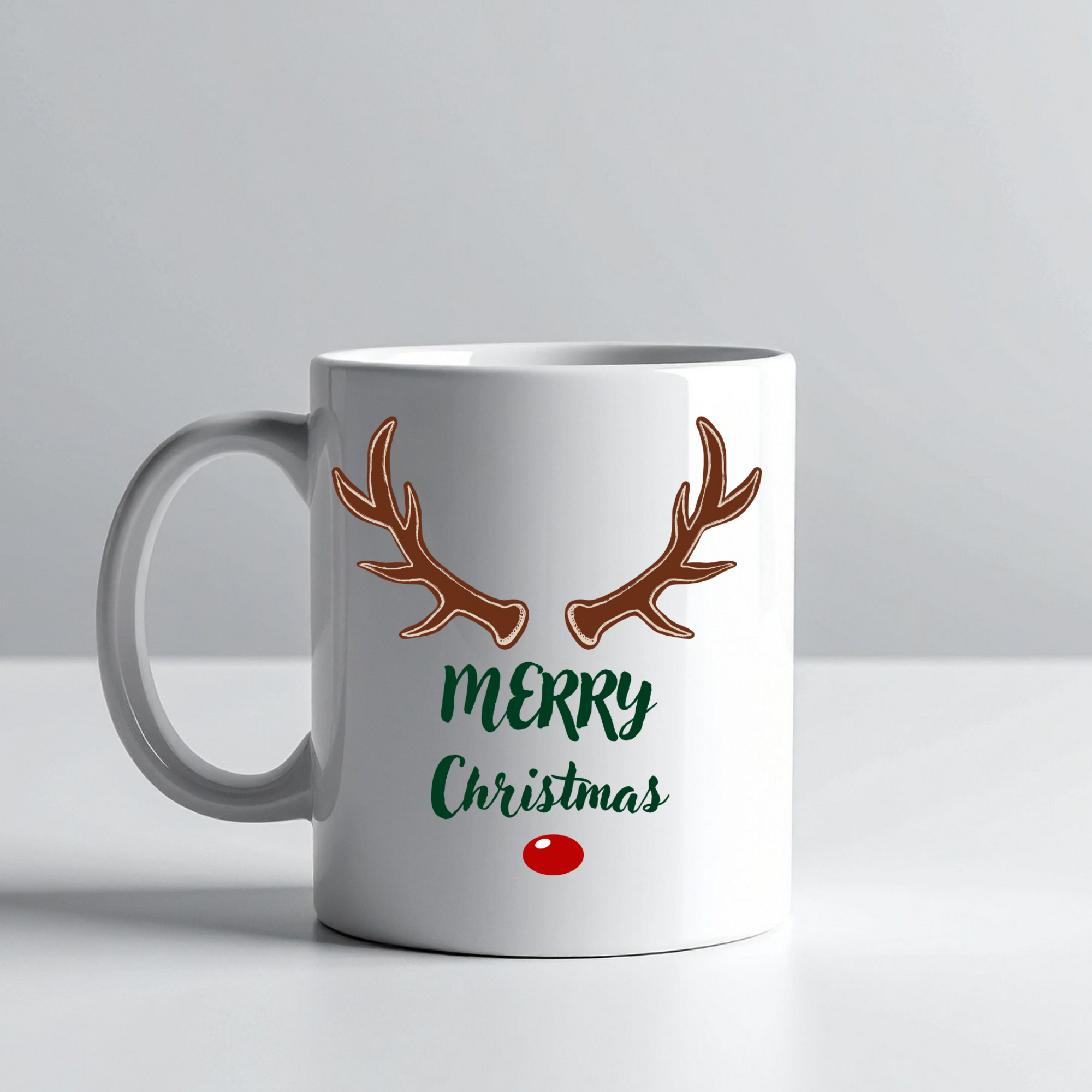 Merry Christmas Yazılı Geyik Boynuzlu Yılbaşı Kupası Model 212 Baskılı Seramik Kahve Kupası