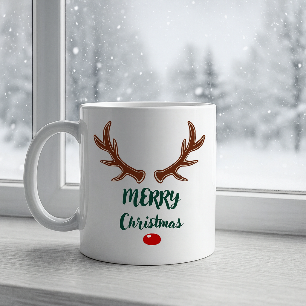 Merry Christmas yazılı geyik boynuzlu yılbaşı kupası ile yeni yıl ruhunu yaşayın. Model 212 baskılı seramik kupa şık ve kaliteli tasarımıyla öne çıkar.