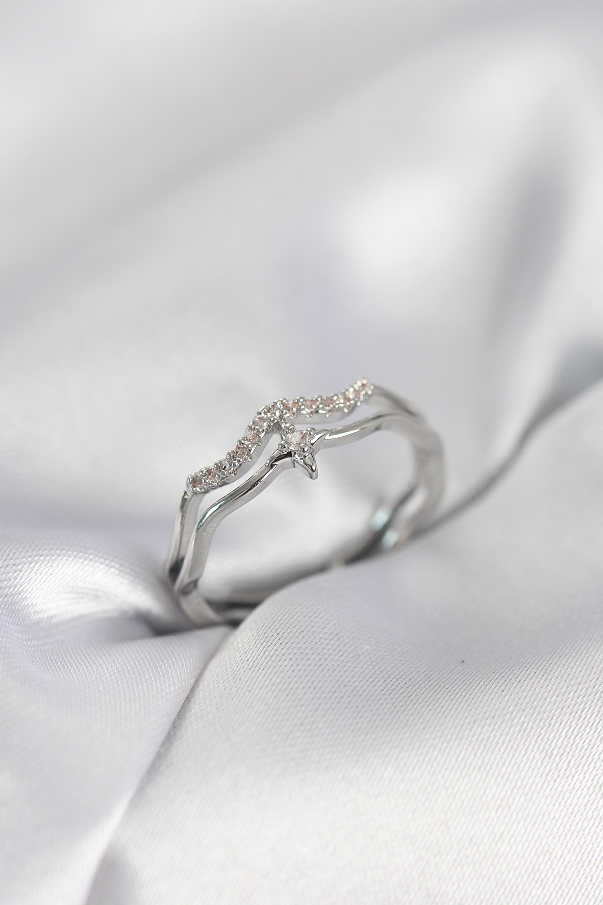 Minimal Yıldız Model Gümüş Renk Zirkon Taşlı Kadın Yüzük